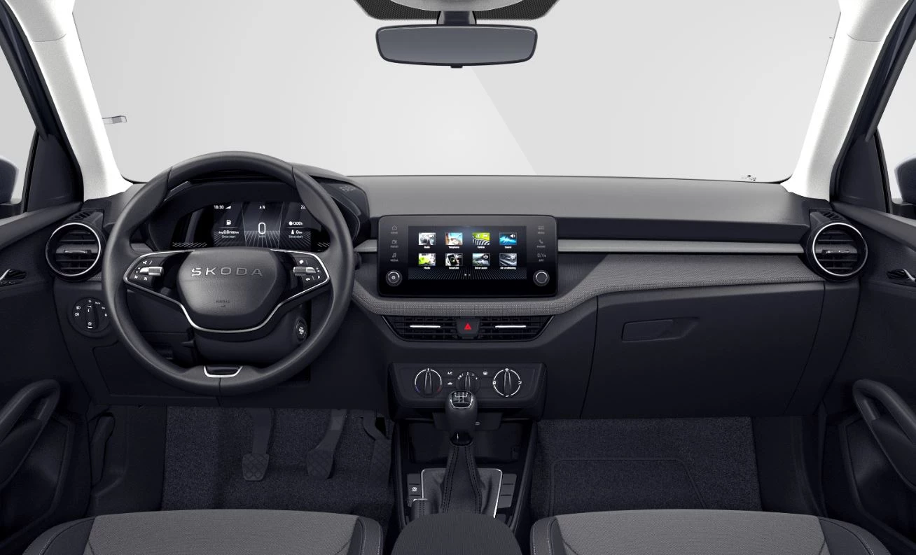 De ŠKODA Fabia is ruim en comfortabel. Deze nieuwe auto is nu uit voorraad leverbaar. Hij heeft een benzinemotor en een handgeschakelde vijfversnellingsbak. Tot de uitrusting van deze ŠKODA behoren ook LED koplampen, in delen neerklapbare achterbank en LED-achterlichten.