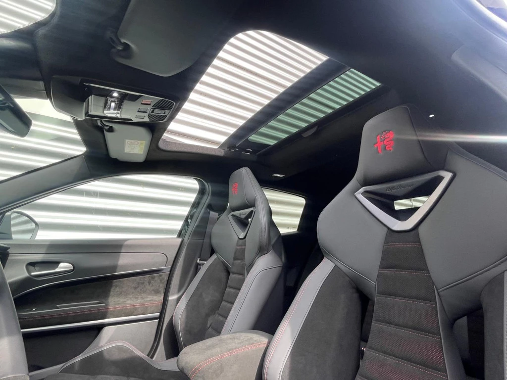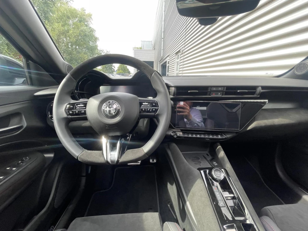 Hij zorgt voor een ontspannen rijervaring, deze Alfa Romeo Junior. Het is een auto uit 2025, op de teller staat een kilometerstand van 4500. Deze goed onderhouden auto is van de eerste eigenaar. Met zijn benzinemotor en automatische transmissie is dit een prima auto voor nog vele kilometers. Voorin is het 's winters genieten met de verwarmbare voorstoelen. Deze hebben bovendien een massagefunctie, zodat bestuurder en bijrijder altijd fit en soepel uitstappen. Chauffeur en bijrijder zitten stabiel in de scherpe bochten door de sportstoelen. Een handige voorziening op deze auto is de elektrische achterklep die je op afstand kunt openen. Met het grote glazen panoramadak geniet jij van maximale lichtinval. De koplampen zijn voorzien van matrix LED-verlichting waarmee je aanzienlijk verder kan kijken in het donker. Het systeem past zelf de lichtstraal aan op het moment tegenliggers verblind kunnen worden. Ook 18 inch lichtmetalen velgen, halflederen bekleding, donker getint glas achter, in delen neerklapbare achterbank en LED-achterlichten horen tot de voorzieningen op deze auto.