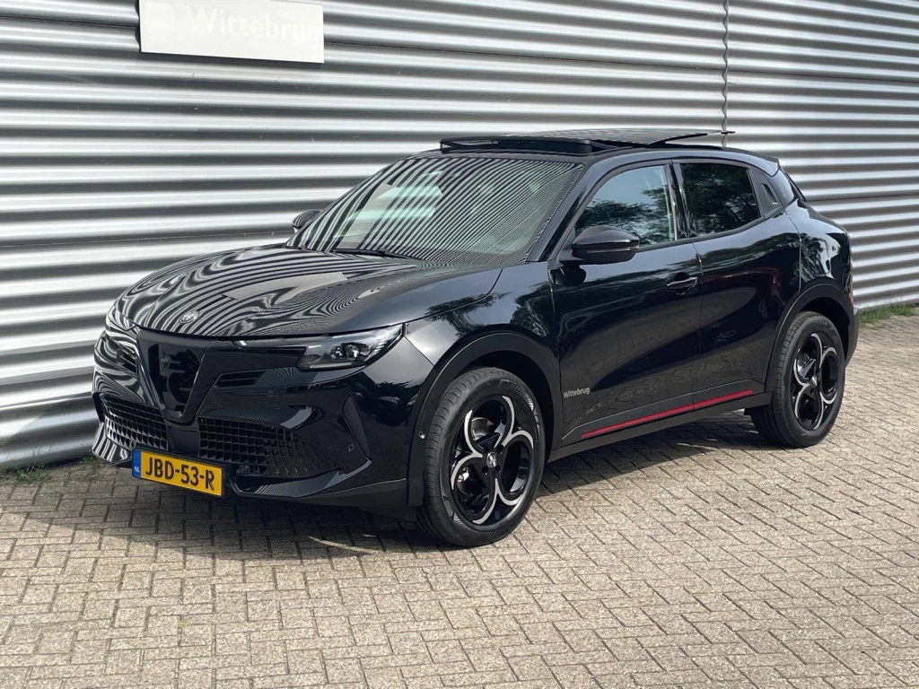 Hij zorgt voor een ontspannen rijervaring, deze Alfa Romeo Junior. Het is een auto uit 2025, op de teller staat een kilometerstand van 4500. Deze goed onderhouden auto is van de eerste eigenaar. Met zijn benzinemotor en automatische transmissie is dit een prima auto voor nog vele kilometers. Voorin is het 's winters genieten met de verwarmbare voorstoelen. Deze hebben bovendien een massagefunctie, zodat bestuurder en bijrijder altijd fit en soepel uitstappen. Chauffeur en bijrijder zitten stabiel in de scherpe bochten door de sportstoelen. Een handige voorziening op deze auto is de elektrische achterklep die je op afstand kunt openen. Met het grote glazen panoramadak geniet jij van maximale lichtinval. De koplampen zijn voorzien van matrix LED-verlichting waarmee je aanzienlijk verder kan kijken in het donker. Het systeem past zelf de lichtstraal aan op het moment tegenliggers verblind kunnen worden. Ook 18 inch lichtmetalen velgen, halflederen bekleding, donker getint glas achter, in delen neerklapbare achterbank en LED-achterlichten horen tot de voorzieningen op deze auto.