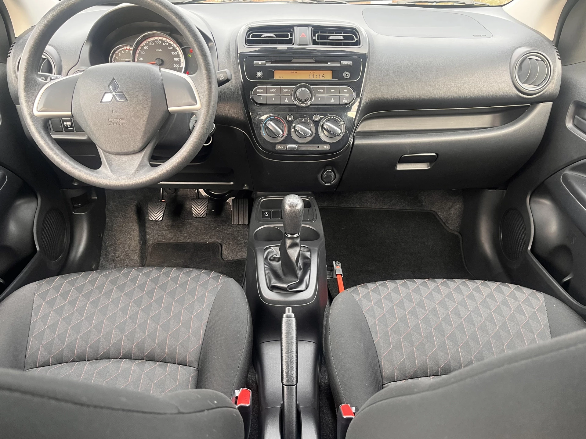 Onderweg laat het audiosysteem superieure geluidskwaliteit horen, mede afkomstig van de eigentijdse DAB-radio. De sensoren van de achteropkomend verkeer waarschuwing houden zicht op de dode hoeken achter je. Te weinig afstand tot de achterligger? Het systeem geeft direct een signaal. De auto neemt je werk uit handen doordat hij zelf veel in de gaten houdt. Een regensensor en een automatisch inschakelbare verlichting nemen waar wanneer de ruitenwissers en het licht aan moeten. Natuurlijk heeft deze auto ook airconditioning. De uitrusting van deze Mitsubishi is met buitentemperatuurmeter, centrale deurvergrendeling met afstandsbediening, bagage afdekhoes, boordcomputer en verstelbaar stuur behoorlijk compleet.