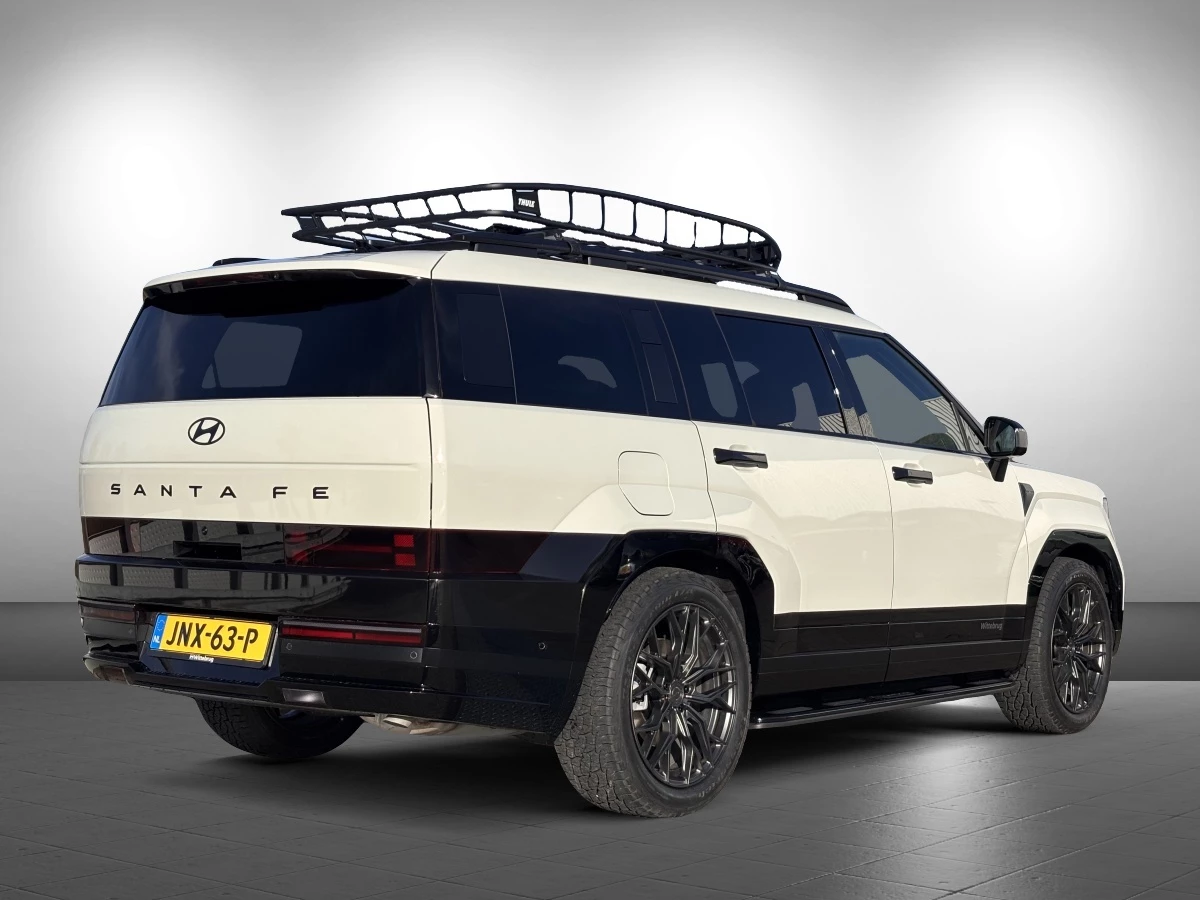 Het is een mooie auto, deze Hyundai Santa Fe uit 2026, en hij heeft 3425 kilometer gelopen. De onderhoudsgeschiedenis is bekend. Deze dealeronderhouden auto is van de eerste eigenaar. Een krachtige benzinemotor zorgt voor de aandrijving van deze SUV. Twee interessante extra's vallen direct op: de elektrisch bedienbare achterklep en het lederen interieur. Luxe én gemak! Donkere en koude maanden? Je zit altijd goed dankzij de stoelverwarming. In de winter wil iedereen mee. Zou dat komen door de verwarmde achterbank? Natuurlijk behoren 20 inch lichtmetalen velgen, Full LED koplampen, adaptief dempingsysteem, warmtewerend glas, dakspoiler en in delen neerklapbare achterbank ook tot de uitrusting van deze complete auto.