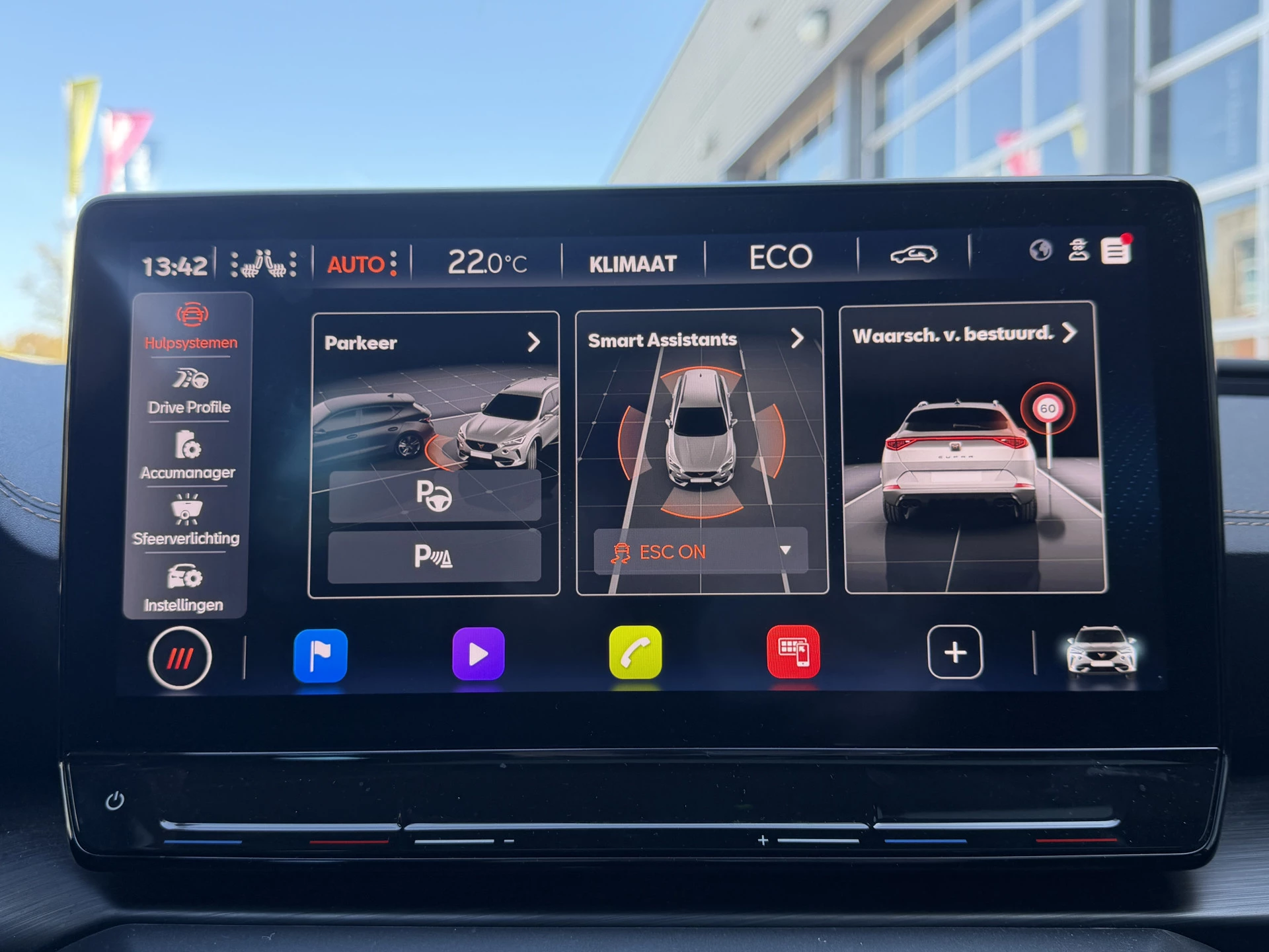 Met de nieuwste technologieën aan boord is deze CUPRA in staat om zelf te reageren op potentieel gevaarlijke situaties op de weg. Je rijdt ook veiliger omdat deze auto voor jou de verkeersborden langs de weg kan lezen. De belangrijkste borden worden op jouw instrumentarium geprojecteerd, zodat je ze niet kunt missen. Met het Lane-keeping systeem ga je nooit onbedoeld over de streep. Deze CUPRA Formentor blijft altijd alert. Zo wordt gebruik gemaakt van forward collision warning. Bij het mogelijke risico op een aanrijding met een voertuig voor u, slaat het systeem alarm. Met voorzieningen als dodehoekdetectie, hill hold functie, vermoeidheidsherkenning, autonoom remsysteem en bandenspanningcontrolesysteem, ben je altijd veilig onderweg.
