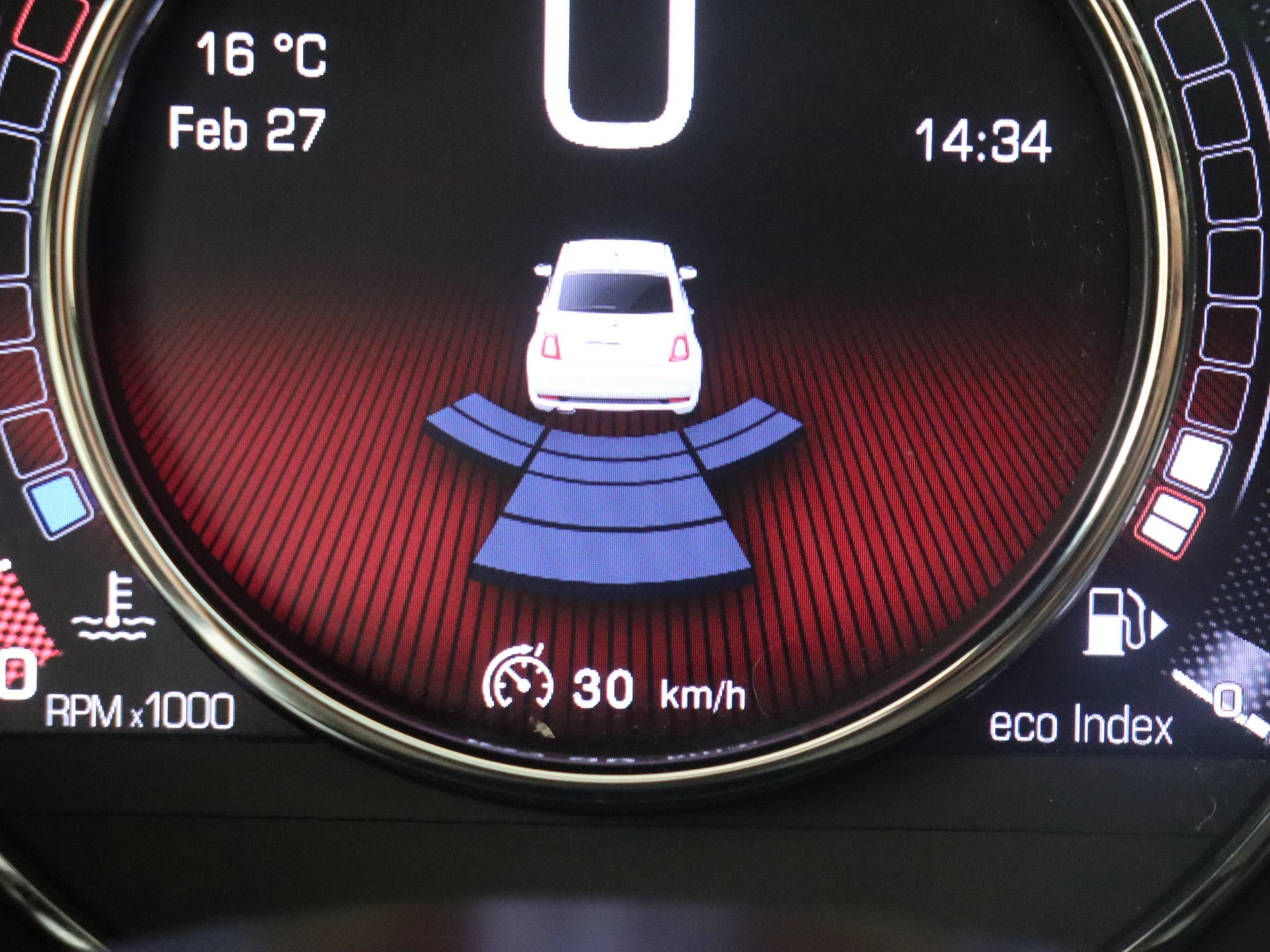 Zoals je mag verwachten van deze Fiat 500 is hij uitgerust met een reeks aan actieve veiligheidssystemen. Brake assist verhoogt de remdruk in een noodsituatie zodat je sneller stil staat.