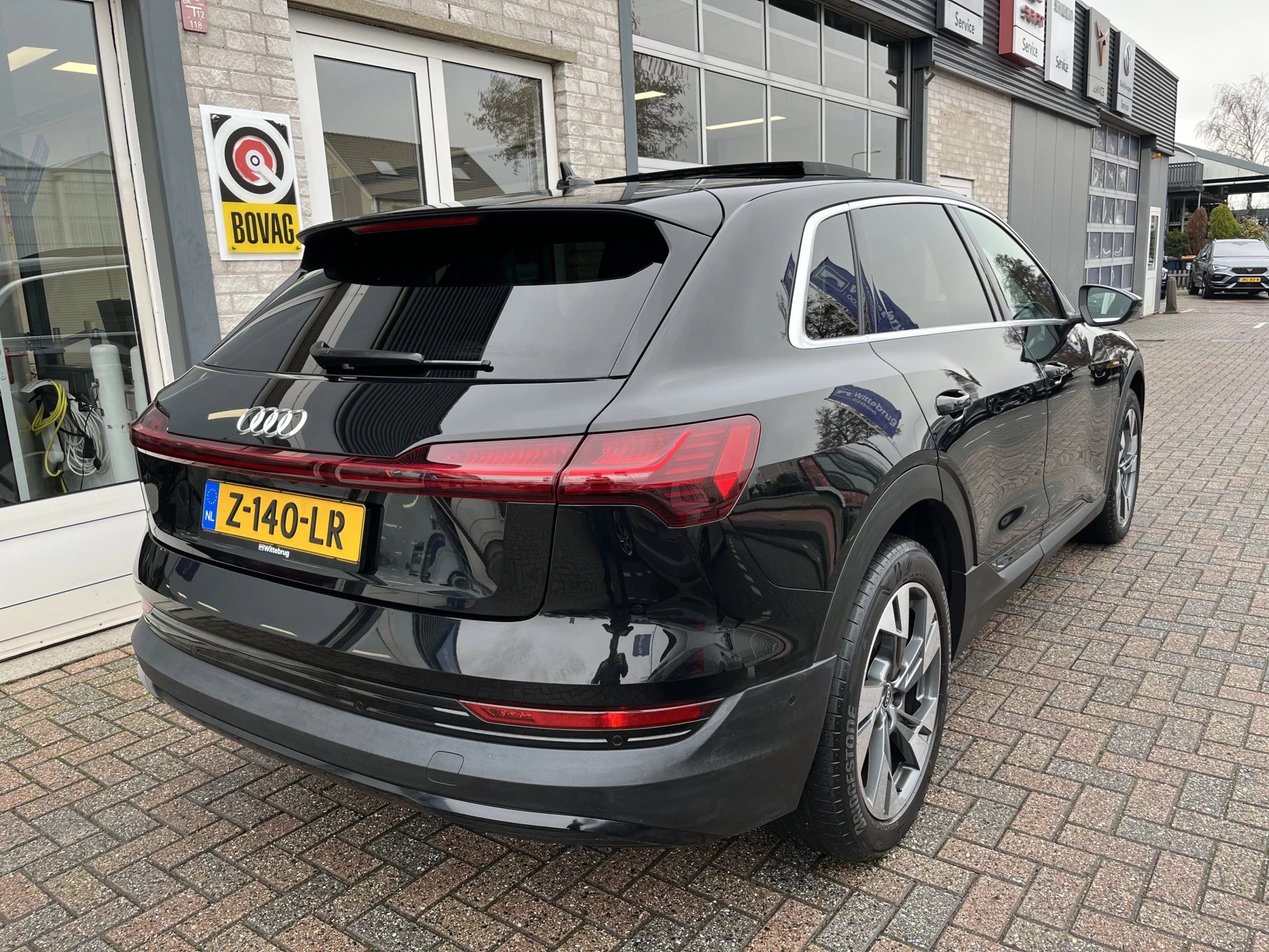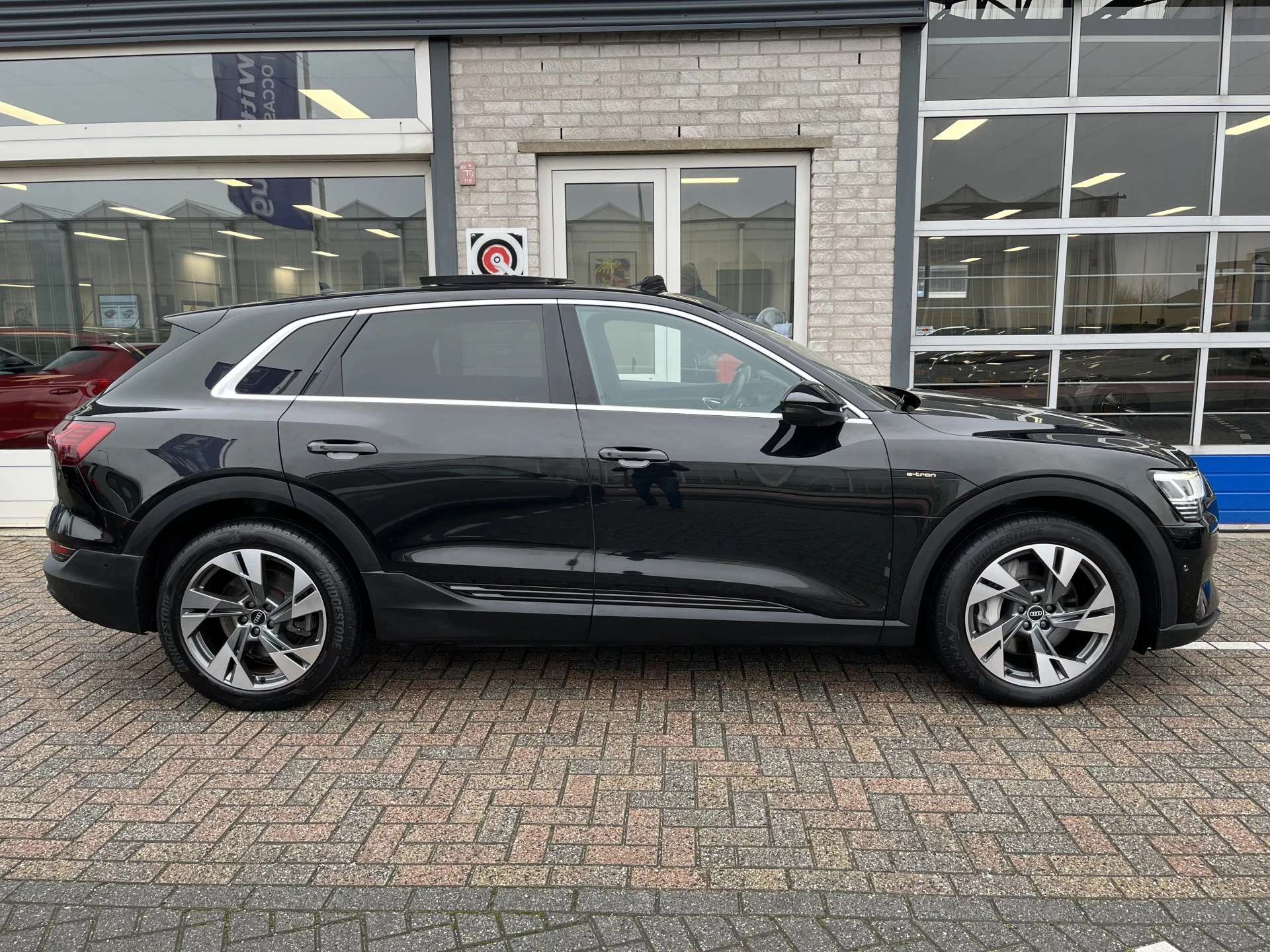 Een nieuw tijdperk breekt aan. Emissievrij rijden is niet langer toekomstmuziek met deze elektrische Audi e-tron. Je zult verrast zijn door de power van de elektromotor. En stil! De krachtige motor geeft deze Audi uitstekende prestaties. Met de elektrisch bedienbare achterklep kun je handsfree bij de kofferruimte komen. En daarna prinsheerlijk plaatsnemen in het lederen interieur. Winterse omstandigheden? Geniet dan van het comfort van de stoelverwarming! Een mooie, constante en solide ligging op de weg: dat is het voordeel van luchtvering. Met het grote glazen panoramadak geniet jij van maximale lichtinval. Ook LED koplampen, adaptief dempingsysteem, zwarte hemelbekleding, getint glas, in delen neerklapbare achterbank en LED-achterlichten zijn aan boord.