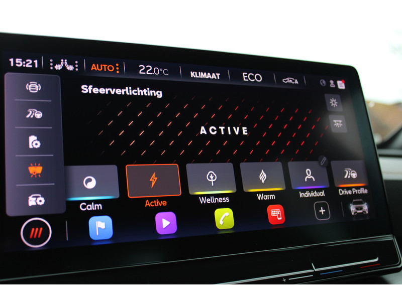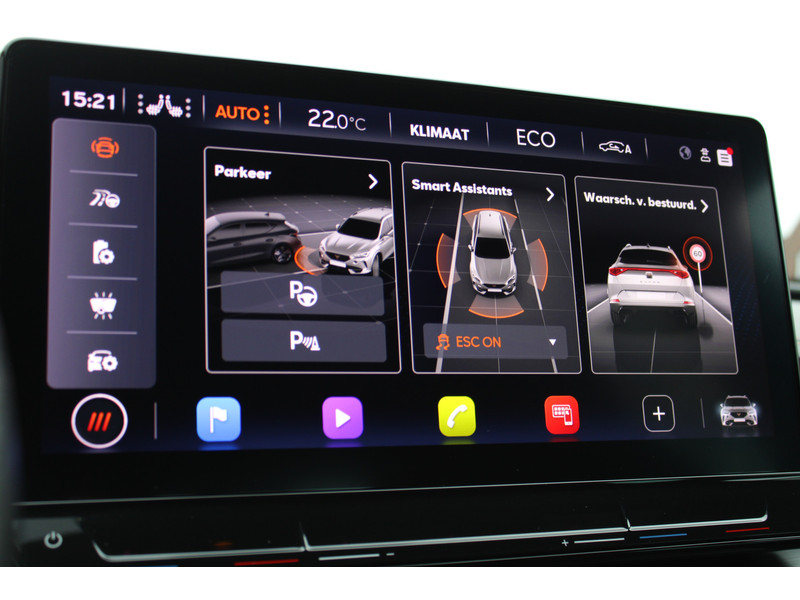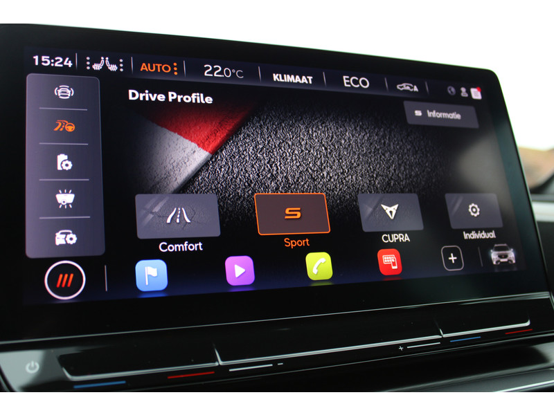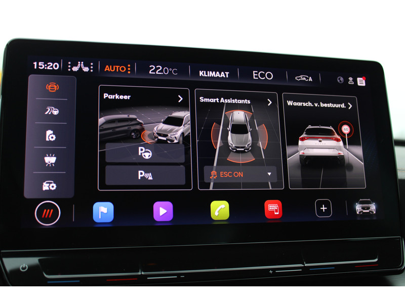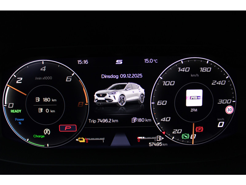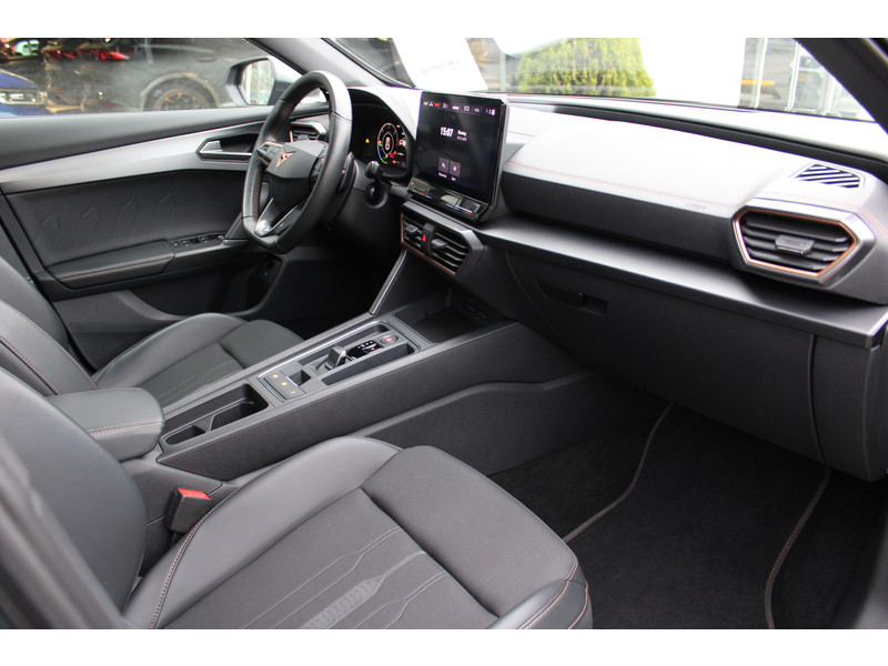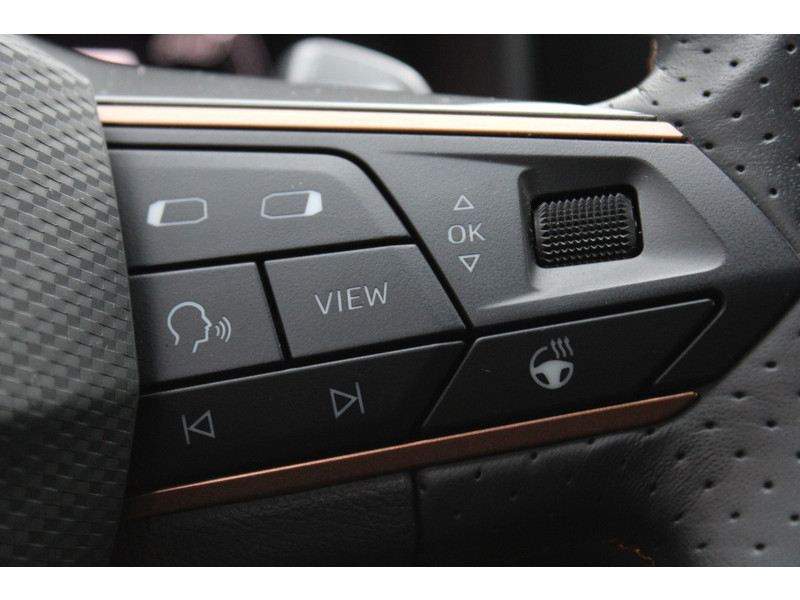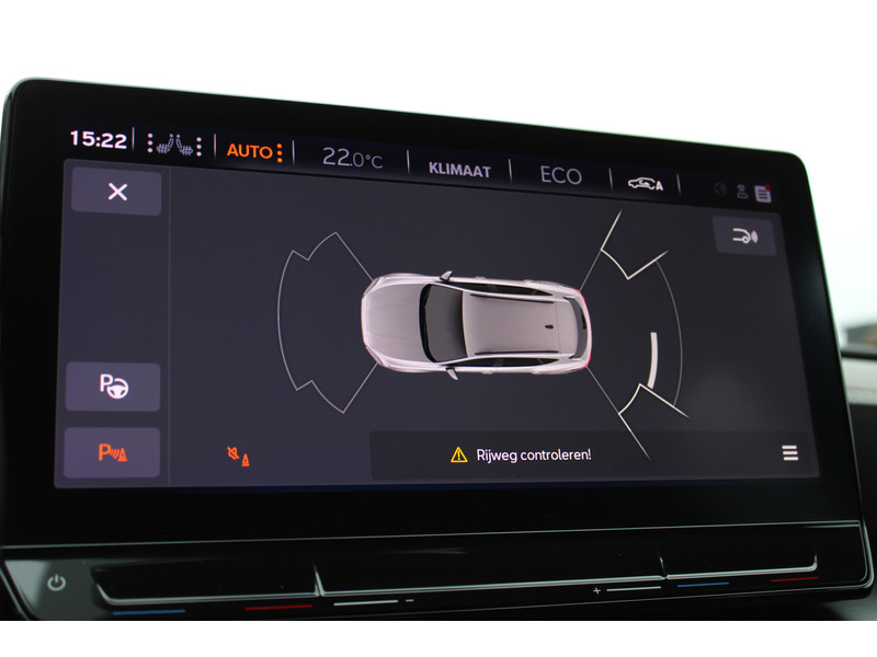 Snelheid, omgevingsinfo, navigatie en communicatie... Het digitale dashboard geeft alles realtime weer. Onder alle omstandigheden perfect zicht op wat zich achter de auto afspeelt: de achteruitrijcamera zorgt ervoor! Met adaptive cruise control houdt deze auto automatisch afstand tot jouw voorligger. Rijden-stilstaan, rijden-stilstaan. Niks is irritanter en vermoeiender dan filerijden. Daar heeft deze CUPRA Formentor een oplossing voor: de file assistent, die met radarmeting permanent het tempo aanpast op de voorligger. Zelfs als die stopt. Deze CUPRA is voorzien van spraakbediening voor het full map navigatiesysteem en voor het audio-installatiesysteem met DAB-ontvangst. Maar je kunt ook de knoppen op het stuur gebruiken. Wat je ook in deze auto kunt vinden zijn achteropkomend verkeer waarschuwing, electronic climate control, draadloos opladen, regensensor, keyless entry en automatisch dimmende binnenspiegel.