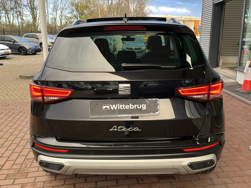 Van autorijden mag je best genieten. En dat ga je ook, achter het stuur van deze SEAT Ateca, want dankzij de hoogwaardige technologie die in deze auto is verwerkt, is iedere kilometer een klein feestje. Het motorvermogen en de uitgebalanceerde wegligging zorgen dat jij altijd in controle bent. De krachtige benzinemotor van deze auto is gekoppeld aan een automatische transmissie. Van een cabrio heb je alleen 's zomers plezier. Maar het elektrisch bediende glazen panorama dak van deze auto betekent het hele jaar genieten. Net zoals je elke dag het gemak ervaart van de elektrisch bedienbare achterklep. Tijdens koude winterdagen verjaagt jouw stoelverwarming de kou en maakt het rijden heerlijk comfortabel. Bij de uitrusting van deze SEAT horen onder meer 18 inch lichtmetalen velgen, Full LED koplampen, adaptief dempingsysteem, donker getint glas achter, in delen neerklapbare achterbank en LED-achterlichten.