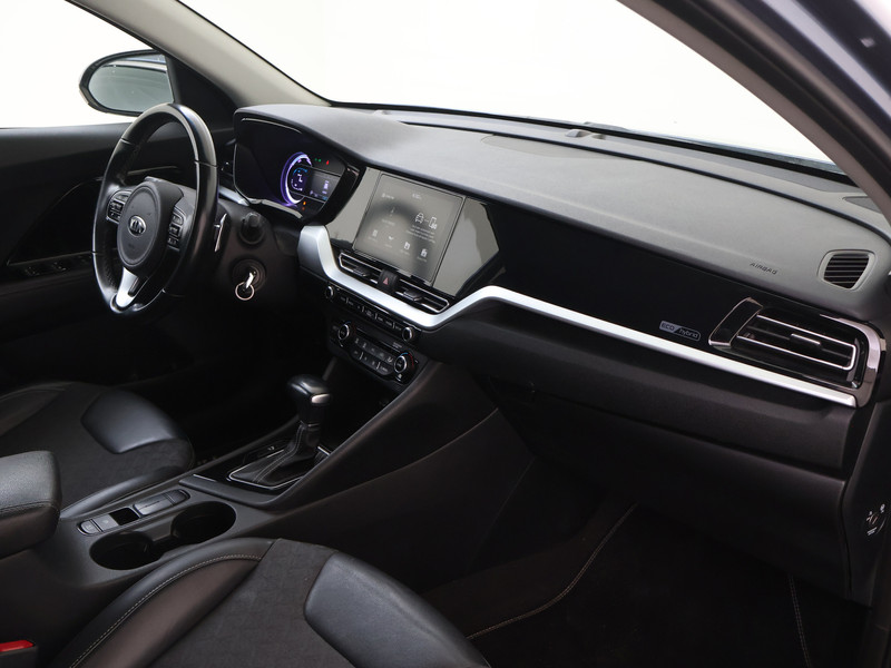 De nieuwste veiligheidssystemen komen in deze Kia Niro samen. Indien je onbedoeld de rijstrook lijkt te verlaten, reageert het Lane-keeping systeem meteen en corrigeert. Dankzij veiligheidsvoorzieningen als hill hold functie, autonoom remsysteem en bandenspanningcontrolesysteem, ben je steeds veilig onderweg.