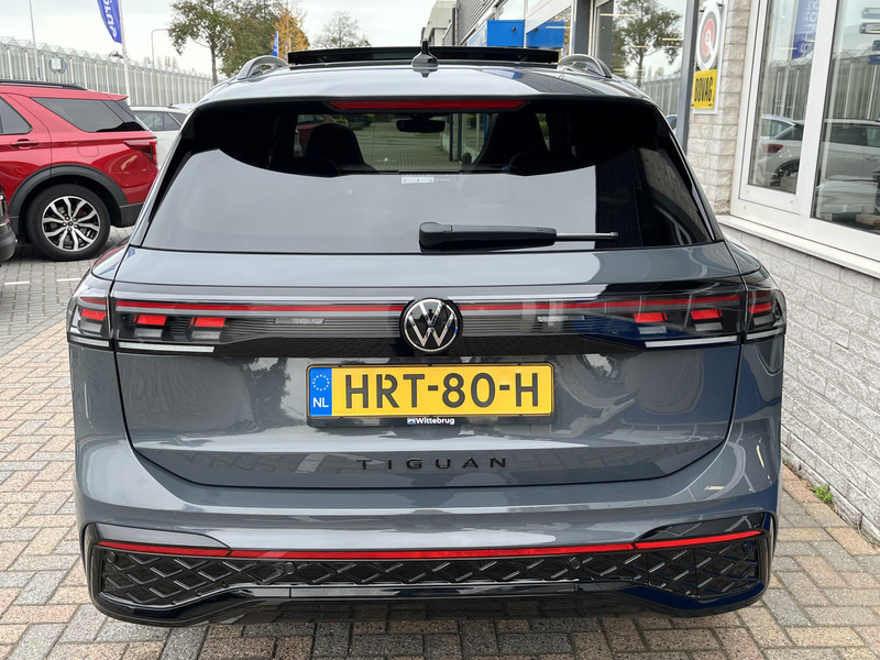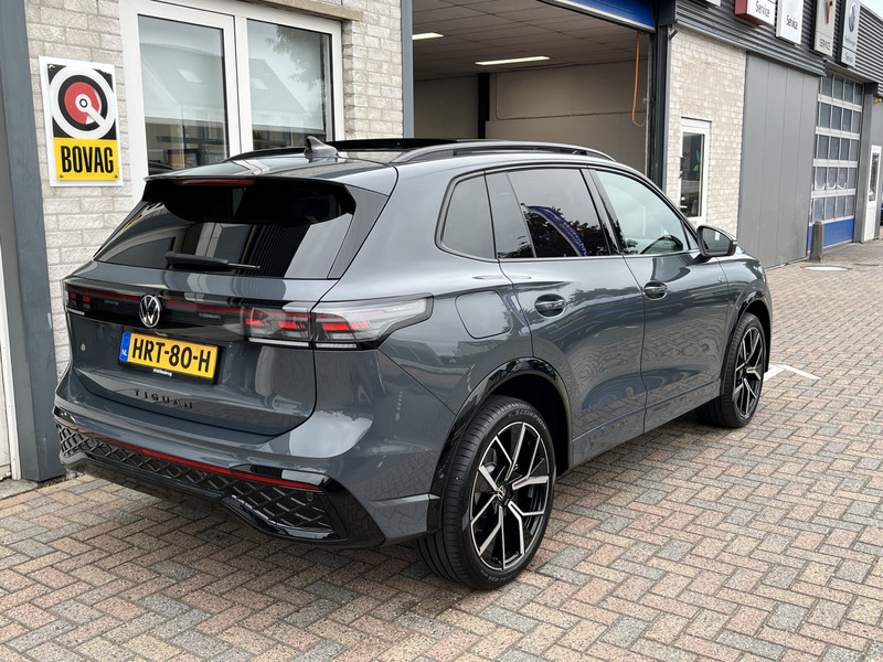 Het is het logo op deze auto dat jou verzekert van de beste kwaliteit: Volkswagen. Want een Volkswagen is niet zomaar een auto, maar een topproduct van de Duitse auto-industrie. Kijk alleen maar naar deze Tiguan. Striping, sportief exterieur en een beauty van een binnenkant: allemaal door de R-Line styling. Een belangrijke eigenschap van iedere Volkswagen is zijn duurzaamheid. Dat zie je ook aan deze Tiguan. In deze auto vind je een benzinemotor en een automatische transmissie. De verwarmbare voorstoelen met massagefunctie, het verwarmbare stuurwiel en de achterbankverwarming zorgen ervoor dat kou geen kans krijgt, en benadrukt dat dit een regelrechte verwenauto is. De strakke sportstoelen hebben niet alleen de looks, maar bewijzen ook hun functie als je wat meer vraagt in de uitdagende bochten. Dankzij het elektrisch bediende glazen panoramadak lijkt het of je altijd met open dak rijdt. De achterklep opent automatisch met een druk op de knop. Handig als je met volle handen staat. De koplampen met matrix LED-verlichting geven daglichtkwaliteit zonder tegenliggers te hinderen. Ook 20 inch lichtmetalen velgen, sportonderstel, adaptief dempingsysteem, warmtewerend glas, zwarte hemelbekleding en LED-achterlichten horen tot de voorzieningen op deze auto.