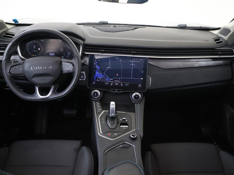 Het digitale dashboard ondersteunt je voortdurend met actuele, bruikbare informatie. Adaptive cruise control is een comfortabele en veilige optie. Het systeem reguleert de snelheid en houdt automatisch afstand tot jouw voorligger. In de file rijden vreet concentratie. Daarom komt de file assistent te hulp om veilig afstand te houden en automatisch te stoppen als je voorligger stilstaat. Een belangrijke veiligheidsvoorziening is de bediening van het audio-installatiesysteem en het full map navigatiesysteem, via knoppen op het stuur en middels spraakbediening. DAB-ontvangst geeft daarbij een kraakheldere ontvangst. Smartphones die zonder snoer kunnen opladen halen simpel een volle accu via de draadloze oplaadmogelijkheid voor telefoons. De Lynk & Co is standaard voorzien van: WIFI-hotspot, achteropkomend verkeer waarschuwing, automatische airconditioning, parkeersensoren achter, regensensor en keyless entry.