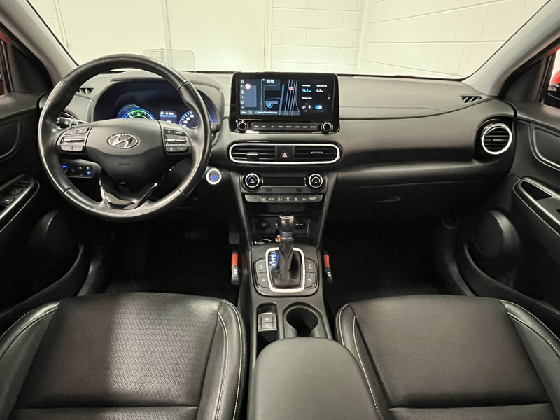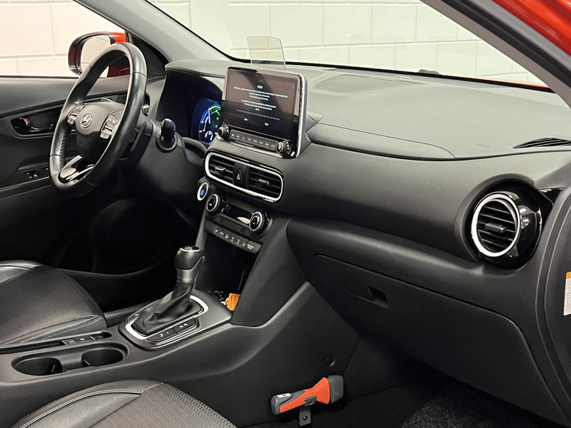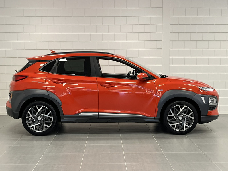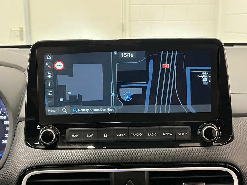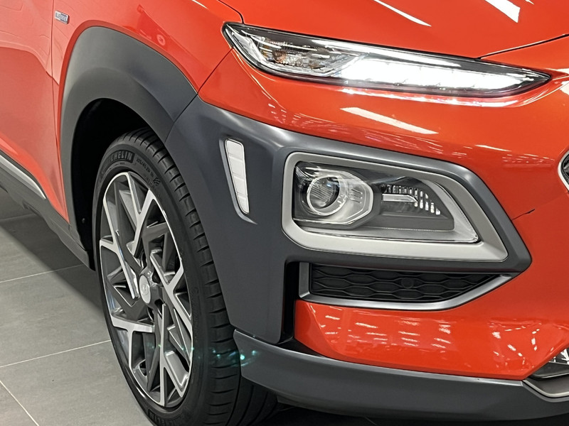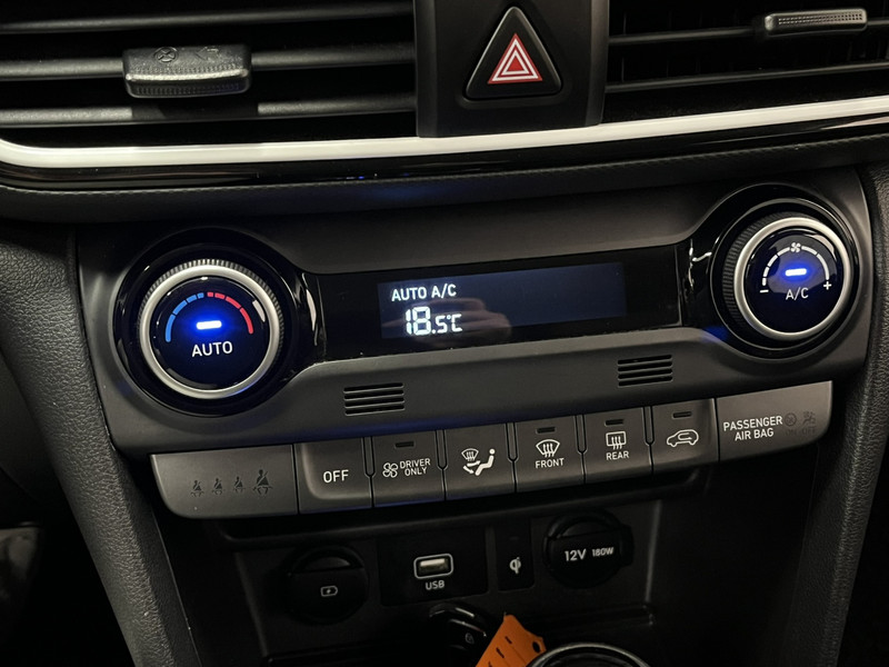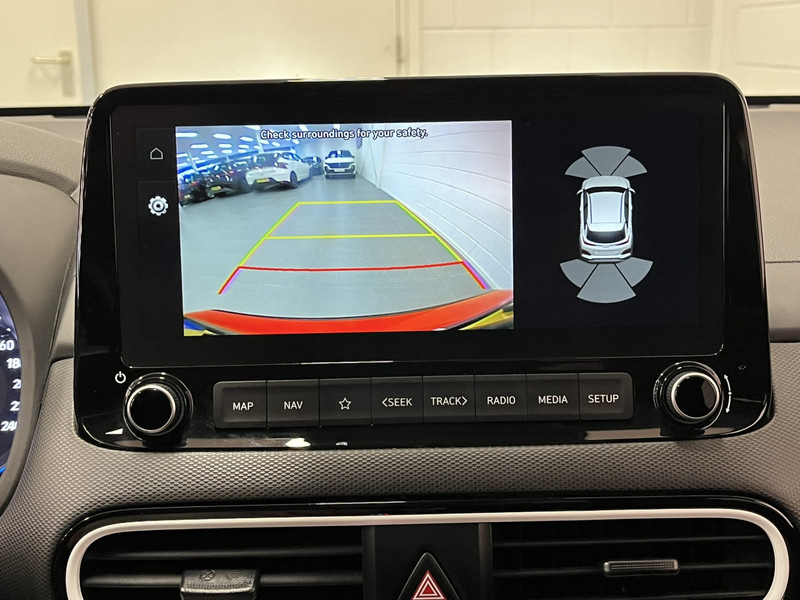 Zoals je mag verwachten van deze Hyundai Kona is hij uitgerust met een reeks aan actieve veiligheidssystemen. Verkeersborddetectie herkent tijdelijke en permanente verkeersborden langs en boven de weg. Deze Hyundai Kona is ook behulpzaam als het gaat om een rechte koers. Het Lane-keeping systeem signaleert en corrigeert als je onbedoeld de rijstrooklijnen dreigt te overschrijden. Deze Hyundai Kona blijft altijd alert. Zo wordt gebruik gemaakt van forward collision warning. Bij het mogelijke risico op een aanrijding met een voertuig voor u, slaat het systeem alarm. De veiligheid van deze auto wordt verder verhoogd door head-up display, dodehoekdetectie, hill hold functie, vermoeidheidsherkenning, autonoom remsysteem en bandenspanningcontrolesysteem.