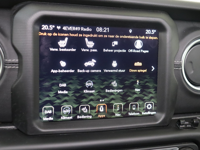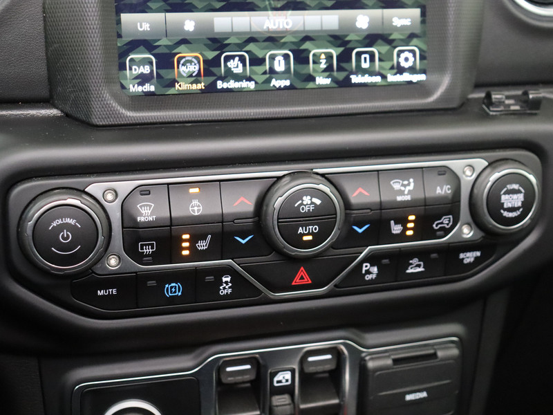 In deze auto zijn verschillende technologieën aanwezig die voor u het verkeer en de omgeving in de gaten houden en die desnoods ook kunnen remmen of bijsturen. Deze Jeep Wrangler Unlimited blijft altijd alert. Zo wordt gebruik gemaakt van forward collision warning. Bij het mogelijke risico op een aanrijding met een voertuig voor u, slaat het systeem alarm. In deze Jeep vinden we verder een dodehoekdetectie, hill hold functie, autonoom remsysteem en bandenspanningcontrolesysteem.