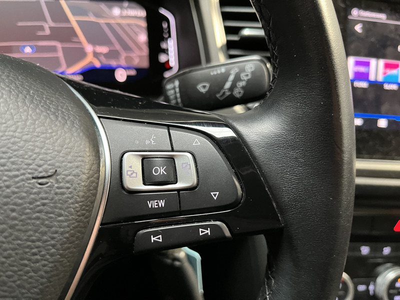 Het digitale dashboard is niet alleen enorm fraai en handig, maar draagt actief bij aan een veilige en slimme rit. Kom maar, kom maar, kom maar... ho! Prettig hoor, zo'n achteruitrijcamera. Adaptive cruise control is veilig en comfortabel. De snelheidsregelaar houdt automatisch afstand tot het voertuig dat voor je rijdt. Laat je onderweg niet afleiden, de bediening van het audio-installatiesysteem en ook het navigatiesysteem gaat met knoppen op het stuur en met spraak. Natuurlijk is de audio-installatie voorzien van DAB-ontvangst. Deze Volkswagen T-Roc is een complete auto anno nu, en dat merk je. Bijvoorbeeld door de aanwezige draadloze oplaadmogelijkheid voor telefoons. Deze auto is voorzien van automatische airconditioning, sportstuur met schakelpaddels, regensensor, automatisch dimmende binnenspiegel, isofix-aansluiting en centrale deurvergrendeling met afstandsbediening.