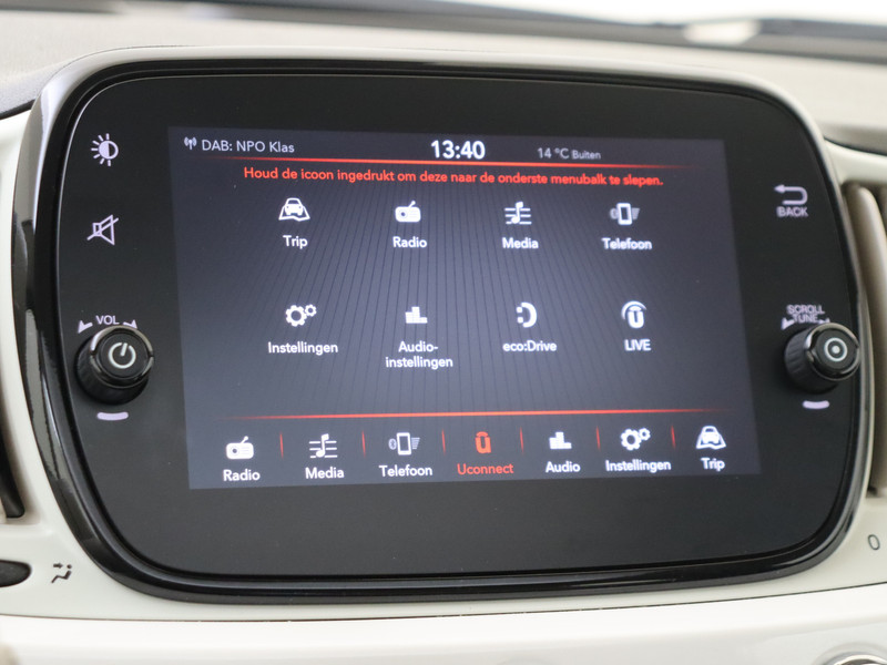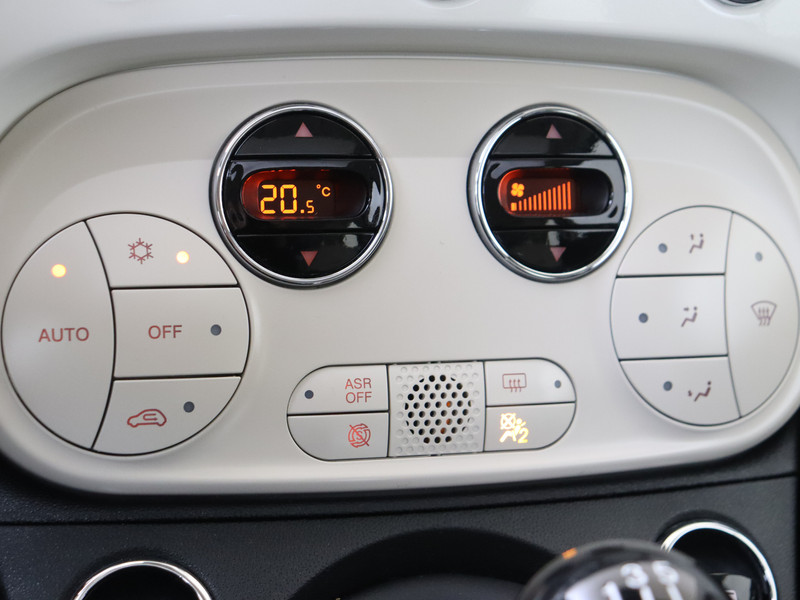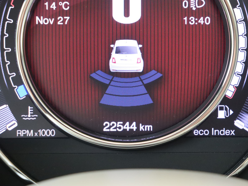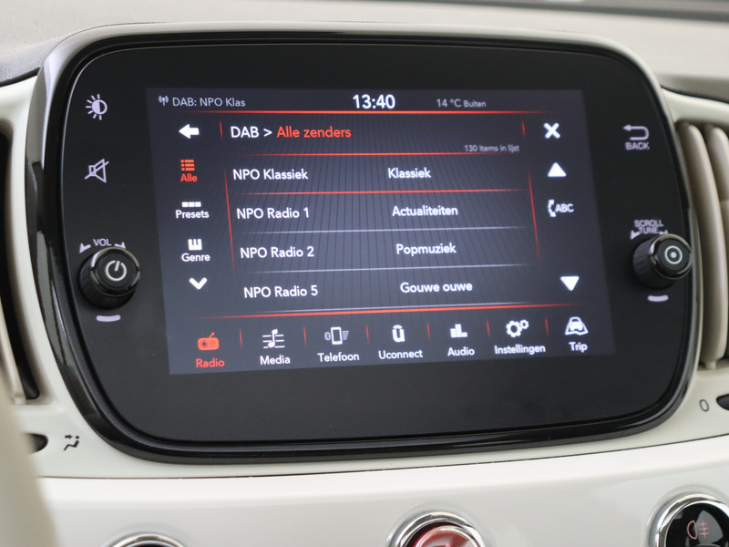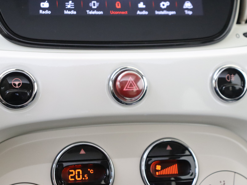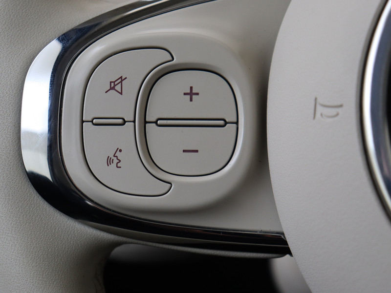 Kies de muziek waarvan jij houdt, dankzij de DAB-radio klinkt het altijd geweldig. Intussen bedien je het audiosysteem en het audio-navigatiesysteem met de knoppen op het stuur. Ook over je schouder zie je onderweg niet alles wat er aan de achterzijde gebeurt. Daarom heeft deze Fiat 500 een achteropkomend verkeer waarschuwing. Het spreekt voor zich dat een auto als deze ook van automatische airconditioning is voorzien. Geen parkeervak is te klein dankzij de assistentie van de parkeersensoren. Er is cruise control aan boord, voor veilige en zuinige kilometers. De uitrusting van deze auto is met lederen stuur en centrale deurvergrendeling met afstandsbediening behoorlijk compleet.