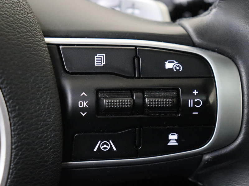 Het personaliseren van jouw cockpitinterface is mogelijk met het digitale dashboard in deze auto. De achteruitrijcamera brengt precies in zicht wat zich achter je bevindt en toont een glashelder beeld op hoge resolutie. Een geluidssignaal waarschuwt hoeveel ruimte je nog hebt. Met adaptive cruise control houdt deze auto automatisch afstand tot jouw voorligger. Zo'n lekkere jonge auto heeft natuurlijk leuke extra's, zoals remote services. Met een speciale app maak je overal verbinding met de auto. Zo kan je functies activeren en controleren. Je kunt het audiosysteem met DAB-ontvangst en het full map navigatiesysteem bedienen met de knoppen op het stuur of zelf met je stem. Deze Kia is voorzien van electronic climate control, schakelpaddles aan het stuur, draadloos opladen, regensensor, keyless entry en automatisch dimmende binnenspiegel.