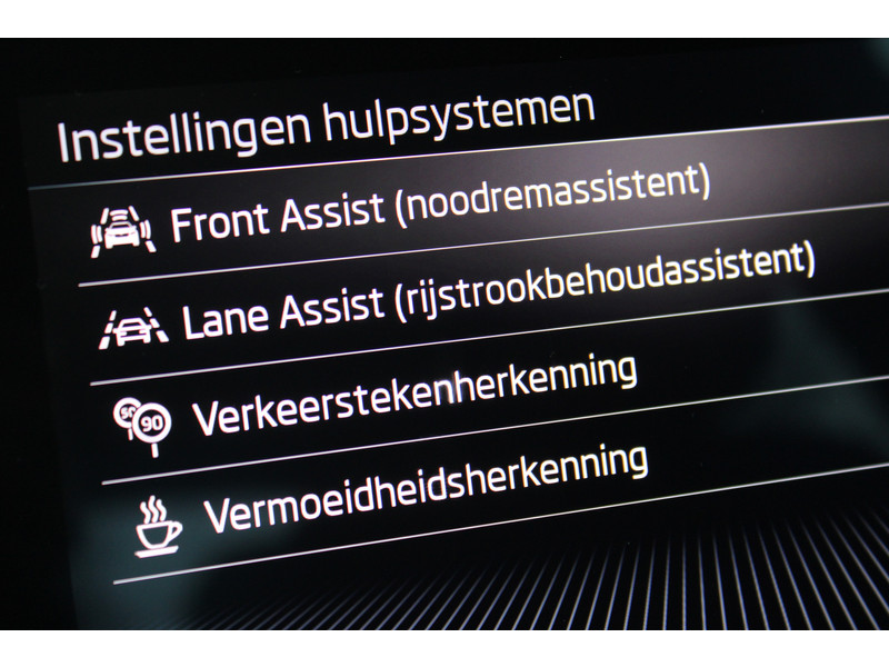 Aan boord van deze ŠKODA houden verschillende geavanceerde systemen voor jou de weg in de gaten. Ze waarschuwen je voor noodsituaties en kunnen in een aantal gevallen ook zelf ingrijpen. Bij de veiligheidssystemen van deze auto hoort ook de verkeersbord-detectie. Die leest tijdens het rijden als het ware met je mee en attendeert je op de significante verkeersborden langs en boven de weg. Het Lane-keeping systeem zorgt dat je mooi binnen de lijntjes blijft. Ongemerkt buiten de rijstrook komen is er niet meer bij. Forward collision warning is een automatisch waarschuwingssysteem dat direct in werking treedt bij gevaar voor een kop-staartbotsing. Verder is deze auto uitgerust met vermoeidheidsherkenning, autonoom remsysteem en bandenspanningcontrolesysteem.