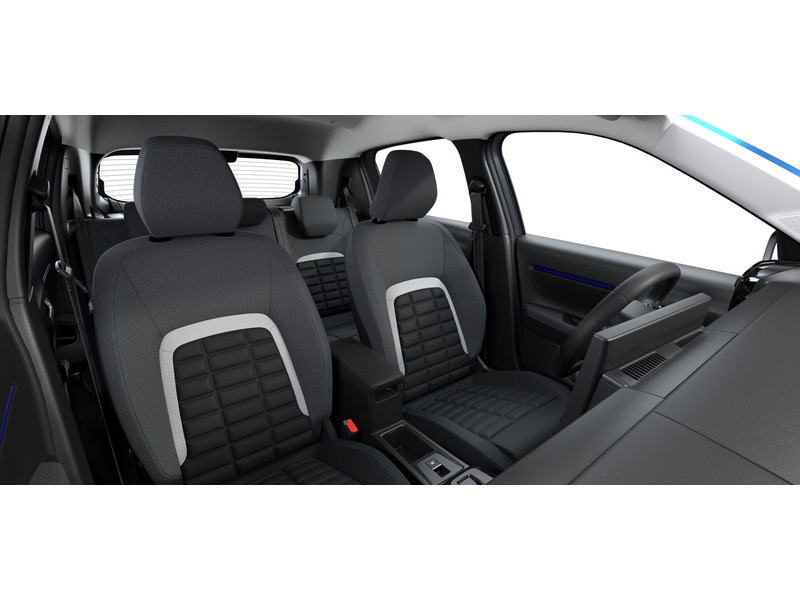 Het infotainmentsysteem bedien je met je vingers of met je stem, met dank aan de geïntegreerde stembediening. Als je 'm vraagt 'hoe gaat het?' geeft deze auto zelf het antwoord. Via de app op je smartphone. Je checkt de meters waar je maar wilt, of activeert diverse functies alvast. Met de DAB-ontvanger heb jij keuze uit talloze digitale radiozenders met de allerhoogste geluidskwaliteit. Parkeerplekken worden er niet ruimer op. Maar met de aanwezige parkeersensoren krijg je deze Citroën Ë-C3 zonder problemen op z'n plaats. Om de veiligheid onderweg te verhogen, heeft deze Citroën zowel een automatisch inschakelbare verlichting als een regensensor aan boord, zodat hij zelf de verlichting en de ruitenwissers kan inschakelen. Ook cruise control, airconditioning, centrale deurvergrendeling met afstandsbediening en verstelbaar stuur horen tot de voorzieningen op deze auto.