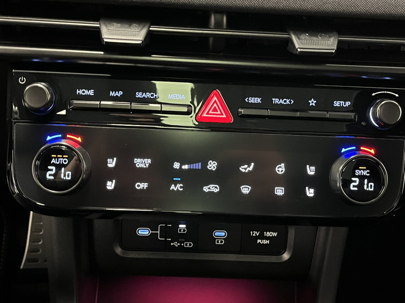 Zoals je mag verwachten van deze Hyundai Tucson is hij uitgerust met een reeks aan actieve veiligheidssystemen. Hou de weg in het vizier! De head-up display zorgt dat je de dashboardinfo in je beeld geprojecteerd krijgt. Belangrijk voor jouw veiligheid en die van jouw passagiers is de verkeersbord-detectie in deze auto. Het Lane-keeping systeem zorgt voor een automatisch constante positie binnen de rijstrook. Afdwalen is uitgesloten. Bovenop deze veiligheidsfeatures heeft deze Hyundai bovendien dodehoekdetector detectiesysteem, hill hold functie, autonoom remsysteem en bandenspanningcontrolesysteem.
