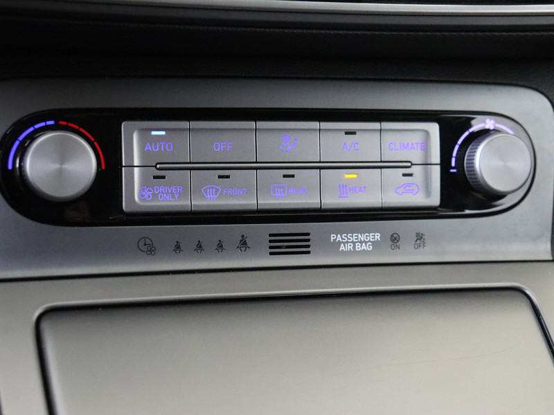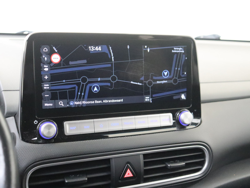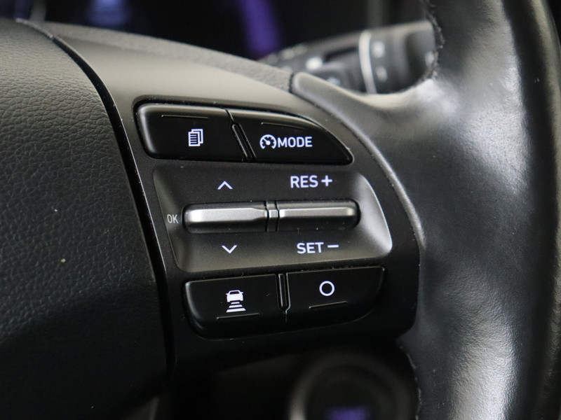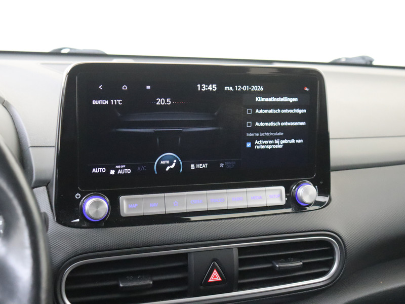 De nieuwste veiligheidssystemen komen in deze Hyundai Kona samen. Verkeersbord-detectie herkent verkeersborden en toont deze op het instrumentarium van de auto. Het Lane-keeping systeem registreert permanent of je binnen de lijnen van de rijstrook blijft; dwaal je onbedoeld af, dan waarschuwt het systeem en corrigeert de koers. De sensor van het forward collision warning-systeem registreert permanent de afstand tot voorliggers en grijpt in als een botsing dreigt. Bovenop deze veiligheidsfeatures heeft deze Hyundai bovendien head-up display, dodehoekdetectie, hill hold functie, vermoeidheidsherkenning, autonoom remsysteem en bandenspanningcontrolesysteem.