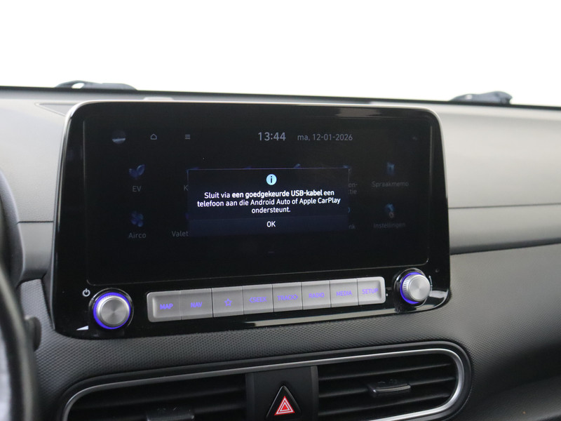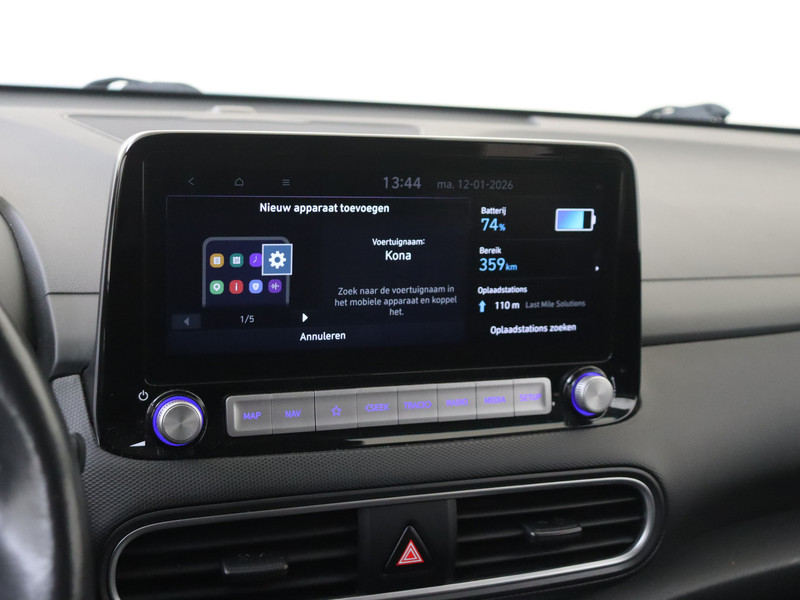 Kijk naar de zelfbewuste vormgeving. Ontdek de vernieuwende technologie aan boord. De Hyundai Kona is een unieke elektrische auto. CO2-uitstoot? Met de elektromotor rij je stil en schoon! De krachtige motor geeft deze Hyundai uitstekende prestaties. Deze Hyundai Kona legt bestuurder én bijrijder compleet in de watten met de verwarmbare voorstoelen. De uitmonstering van deze auto wordt gecompleteerd door onder meer 17 inch lichtmetalen velgen, LED koplampen, donker getint glas achter, in delen neerklapbare achterbank, LED-achterlichten en verstelbare lendensteunen.
