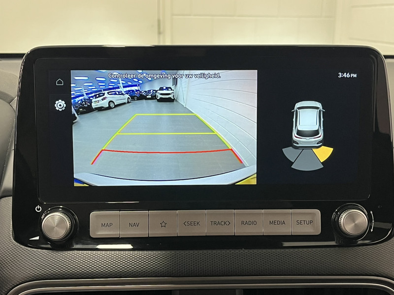 De nieuwste veiligheidssystemen komen in deze Hyundai Kona samen. Een camera houdt de juiste koers binnen de rijstrook in de gaten en het Lane-keeping systeem corrigeert bij afwijkingen. Het systeem van forward collision warning, of in gewoon Nederlands 'botswaarschuwing', treedt in werking als de sensor te weinig afstand signaleert met een voor- of tegenligger. Vermoeidsheidsherkenning neemt tekenen van vermoeidheid waar bij de bestuurder. Het systeem voorkomt dat er daardoor ongelukken gebeuren. Bovenop deze veiligheidsfeatures heeft deze Hyundai bovendien head-up display, dodehoekdetectie, hill hold functie, autonoom remsysteem en bandenspanningcontrolesysteem.