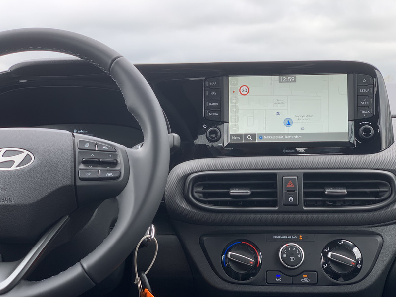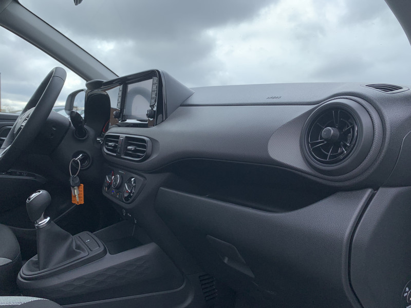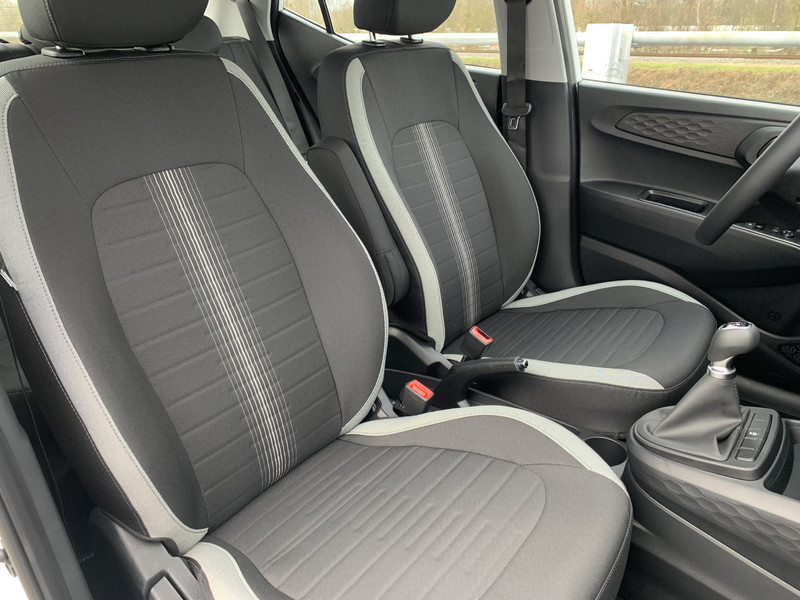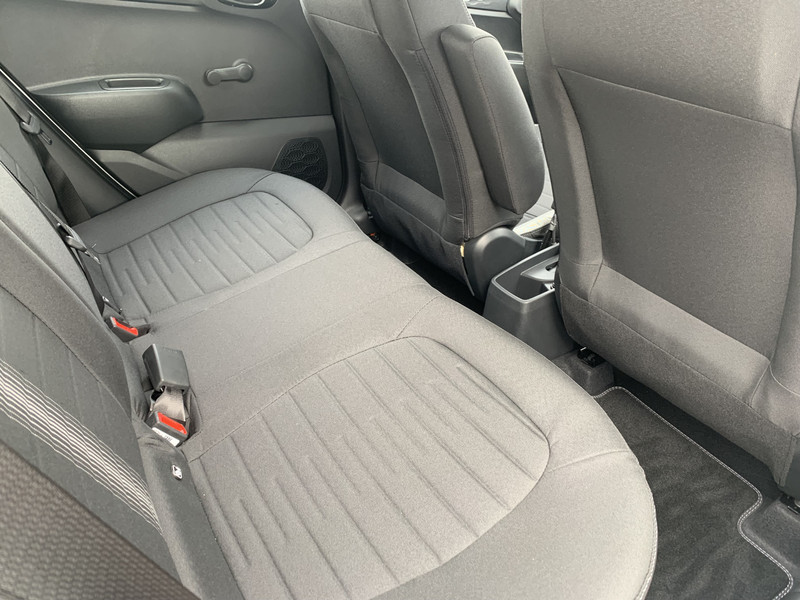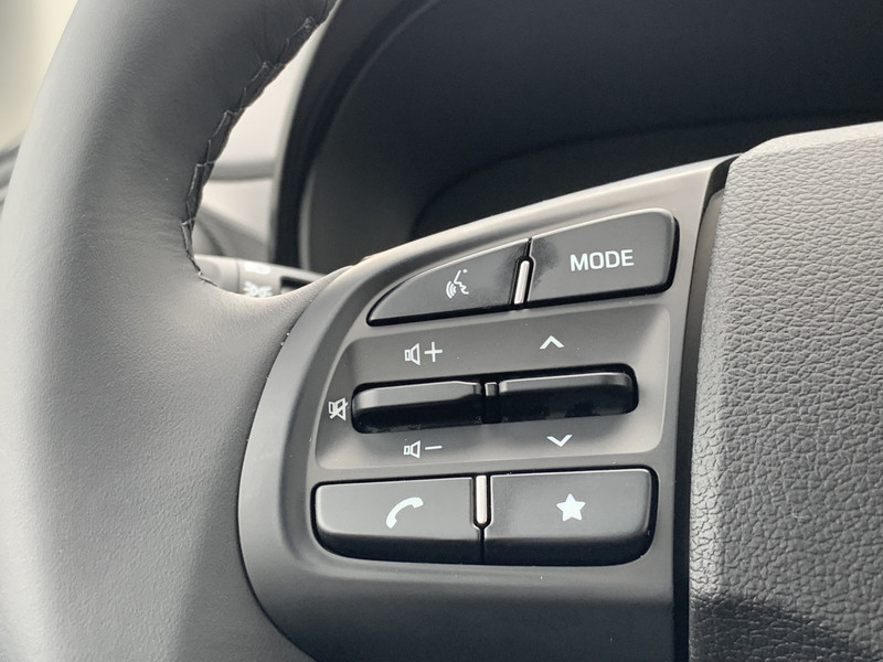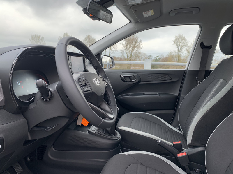 Zoals je mag verwachten van deze Hyundai i10 is hij uitgerust met een reeks aan actieve veiligheidssystemen. Wat deze auto ook kan, is lezen. Hij 'leest' voor jou de verkeersborden tijdens de rit en attendeert je erop door ze op het dashboard te projecteren. Het Lane-keeping systeem registreert permanent of je binnen de lijnen van de rijstrook blijft; dwaal je onbedoeld af, dan waarschuwt het systeem en corrigeert de koers. Onbedoeld bumperkleven is er niet bij, dankzij de forward collision warning. Die waarschuwt direct als een botsrisico met je voorligger dreigt. Ook helpen het hill hold functie, vermoeidheidsherkenning, autonoom remsysteem en bandenspanningcontrolesysteem, jouw rit tot een veilige rit te maken.