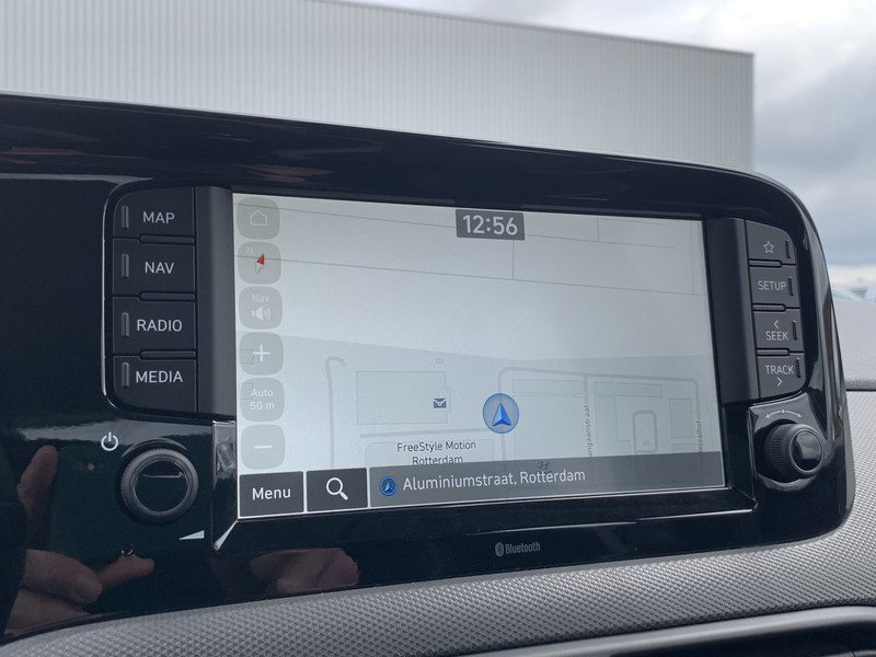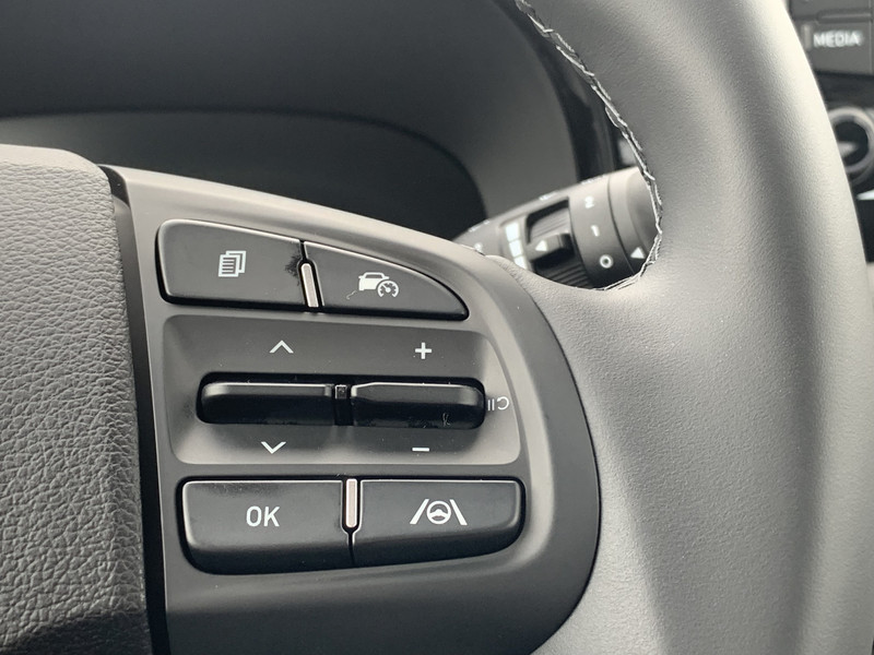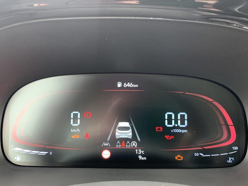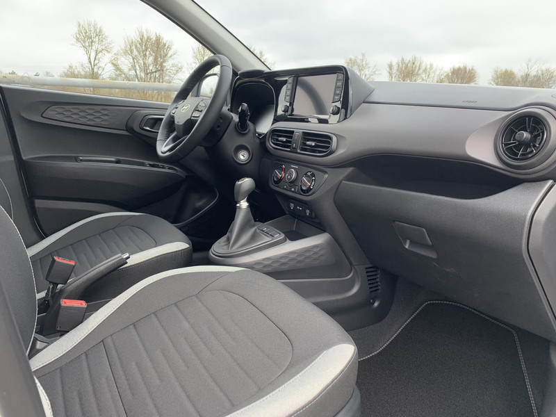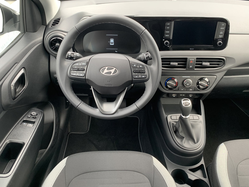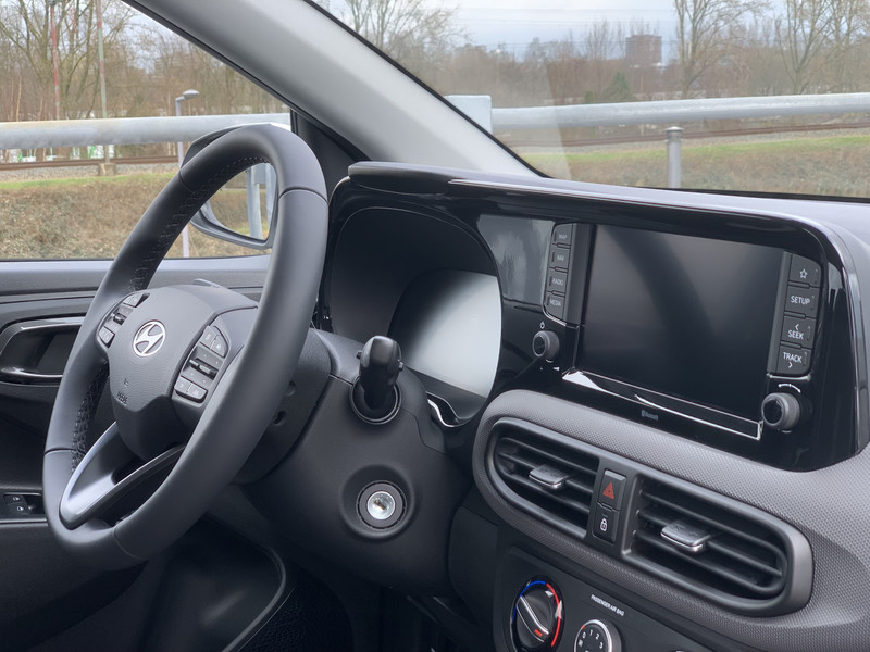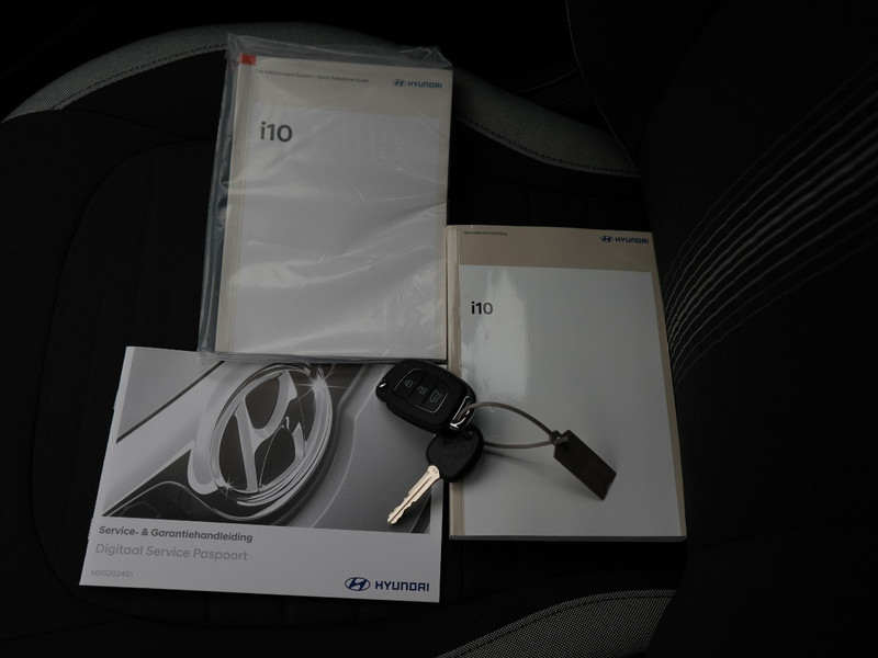Zoals je mag verwachten van deze Hyundai i10 is hij uitgerust met een reeks aan actieve veiligheidssystemen. Wat deze auto ook kan, is lezen. Hij 'leest' voor jou de verkeersborden tijdens de rit en attendeert je erop door ze op het dashboard te projecteren. Het Lane-keeping systeem registreert permanent of je binnen de lijnen van de rijstrook blijft; dwaal je onbedoeld af, dan waarschuwt het systeem en corrigeert de koers. Onbedoeld bumperkleven is er niet bij, dankzij de forward collision warning. Die waarschuwt direct als een botsrisico met je voorligger dreigt. Ook helpen het hill hold functie, vermoeidheidsherkenning, autonoom remsysteem en bandenspanningcontrolesysteem, jouw rit tot een veilige rit te maken.