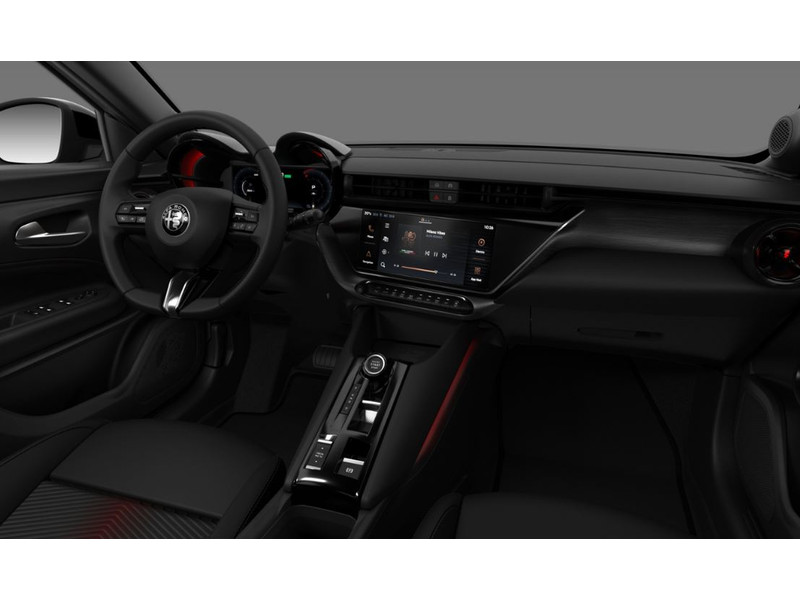 Het pure karakter van een Italiaanse auto herken je altijd. Kijk maar naar deze Alfa Romeo Junior. Het gaat hier om een nieuwe auto, hij is nu direct leverbaar. Elektrisch? Benzine? Bij deze Alfa Romeo Junior kan het allebei. De hybride motor biedt de ideale keuzecombinatie. Een weldaad voor jou en je bijrijder: deze Alfa Romeo Junior heeft verwarmbare voorstoelen. De elektrisch bedienbare achterklep opent met een druk op de knop. Door het glazen panoramadak heb je een weidse zichthoek en geniet je van licht en een gevoel van ruimte. Koplampen voorzien van de allernieuwste lichttechniek, matrix LED-verlichting. Natuurlijk behoren halflederen bekleding, donker getint glas achter, in delen neerklapbare achterbank en LED-achterlichten ook tot de uitrusting van deze complete auto.