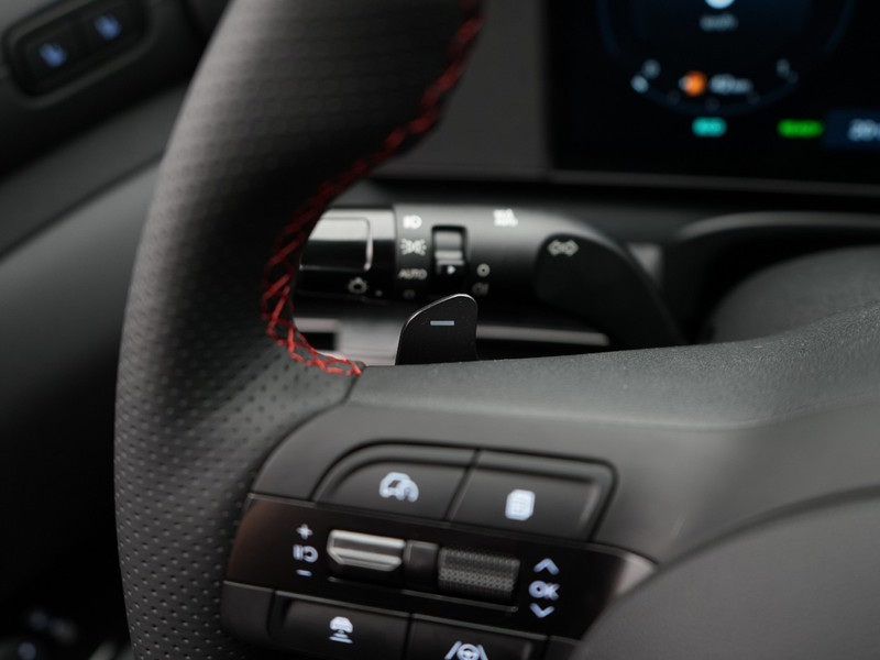 Met het digitale dashboard in deze auto kun je de interface van jouw cockpit personaliseren. Een handige optie is de achteruitrijcamera. Achteruitrijden, inparkeren en manoeuvreren gaat gemakkelijker dan ooit. Met adaptive cruise control houdt deze auto automatisch afstand tot jouw voorligger. Deze auto gaat met je in gesprek. Hij vertelt met behulp van remote services alles over de status van diverse onderdelen en laat zich desgevraagd ook activeren. Gewoon via je smartphone. Het is veiliger om altijd je ogen op de weg te houden en je handen aan het stuur; daarom is dit voertuig uitgerust met een audio-installatiesysteem met DAB-ontvangst en een navigatiesysteem dat kan worden bediend via het stuurwiel of spraakbediening. Ook is de Hyundai uitgerust met: automatische airconditioning, schakelpaddles aan het stuur, draadloos opladen, regensensor, keyless entry en automatisch dimmende binnenspiegel.