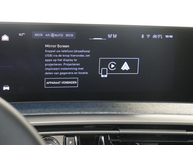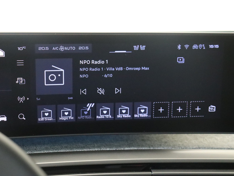 Het personaliseren van jouw cockpitinterface is mogelijk met het digitale dashboard in deze auto. De achteruitrijcamera laat duidelijk zien hoeveel ruimte je nog hebt bij het inparkeren. De speciale app verbindt met Connected Services, die de status van vitale functies bijhoudt en waarschuwt als je bijvoorbeeld moet tanken, de bandenspanning moet controleren of olie moet bijvullen. De bediening van het audiosysteem en het navigatiesysteem gebeurt met knoppen op het stuur en als je wilt zelfs met jouw stem. De audio is overigens voorzien van DAB-radio voor een altijd heldere ontvangst. Kabels niet nodig, de draadloze telefoonlader laadt je smartphone al rijdend bij. Deze auto is voorzien van electronic climate control, regensensor, cruise control, keyless entry, buitentemperatuurmeter en automatisch dimmende binnenspiegel.