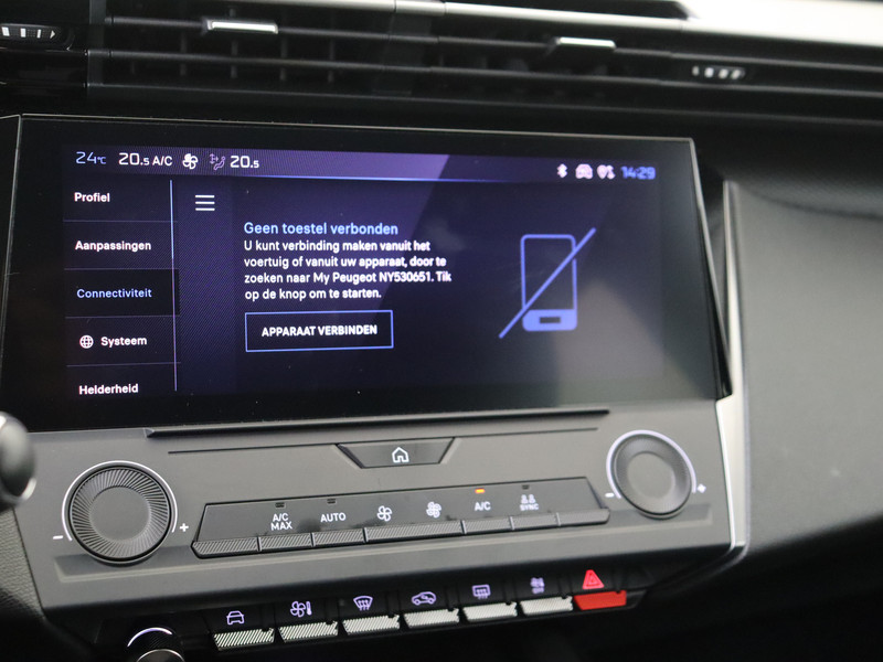 Je zult verrukt zijn van de digitale wereld van mobiliteit; het digitale dashboard projecteert alles wat jij nodig hebt om jouw rit aangenaam en veilig te maken. De bediening van het audiosysteem en het full map navigatiesysteem gebeurt met knoppen op het stuur. Met de electronic climate control selecteer jij de gewenste temperatuur. Het systeem doet de rest. Inparkeren en uitparkeren kost geen enkele moeite dankzij de parkeersensoren. Het drukke verkeer eist onderweg al jouw aandacht op. Daarom is het goed dat deze Peugeot is voorzien van diverse systemen die je assisteren tijdens de rit. Een automatisch inschakelbare verlichting neemt het waar als het donker wordt of gaat schemeren, en schakelt dan automatisch de verlichting in. Op dezelfde manier "ziet" de regensensor de eerste spatjes regen en schakelt dan de ruitenwissers in, en als het harder gaat regenen zet hij de ruitenwissers ook in een snellere stand. Ook cruise control, lederen stuur en centrale deurvergrendeling met afstandsbediening zijn aan boord.