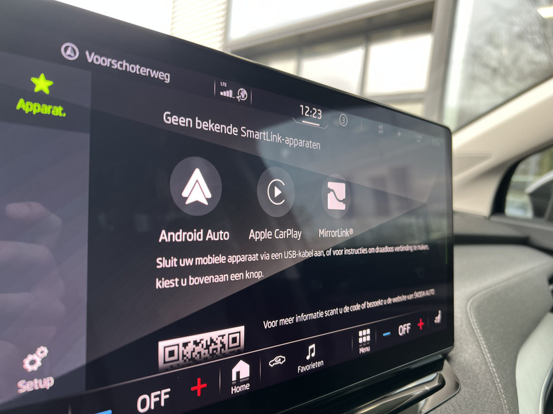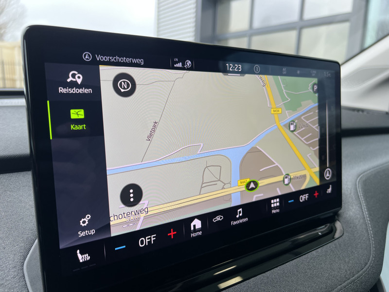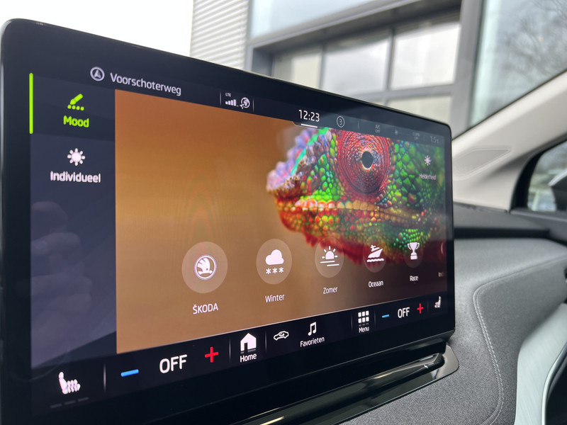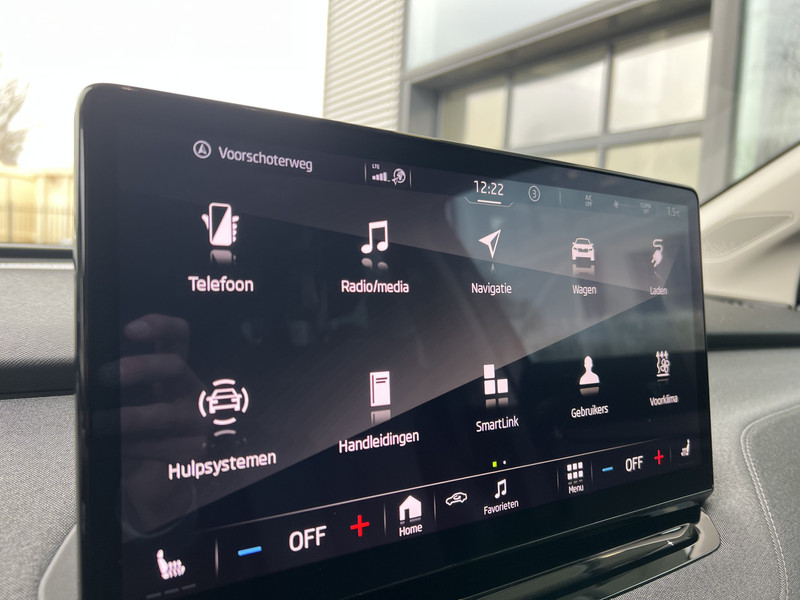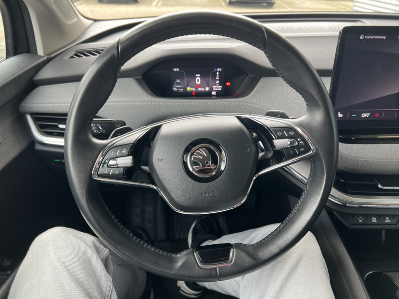 Dankzij het digitale dashboard lees je alle benodigde info gemakkelijk en overzichtelijk af. De achteruitrijcamera vergemakkelijkt achteruit inparkeren. Je ziet duidelijk wat er achter de auto gebeurt. Als je de adaptive cruise control inschakelt, regelt de auto zelf de snelheid en de afstand tot de auto voor je. Filerijden zal nooit een pretje worden. Maar met de file assistent wordt het wél relaxter. Deze geavanceerde optie zorgt dat je automatisch de juiste afstand tot de voorligger houdt en remt bovendien als de rij tot stilstand komt. Naast handmatige bediening kun je belangrijke functies met je stem bedienen dankzij de ingebouwde spraakbediening. Deze ŠKODA is voorzien van navigatiesysteem, electronic climate control, schakelpaddles aan het stuur, draadloos opladen, DAB ontvangst en regensensor.