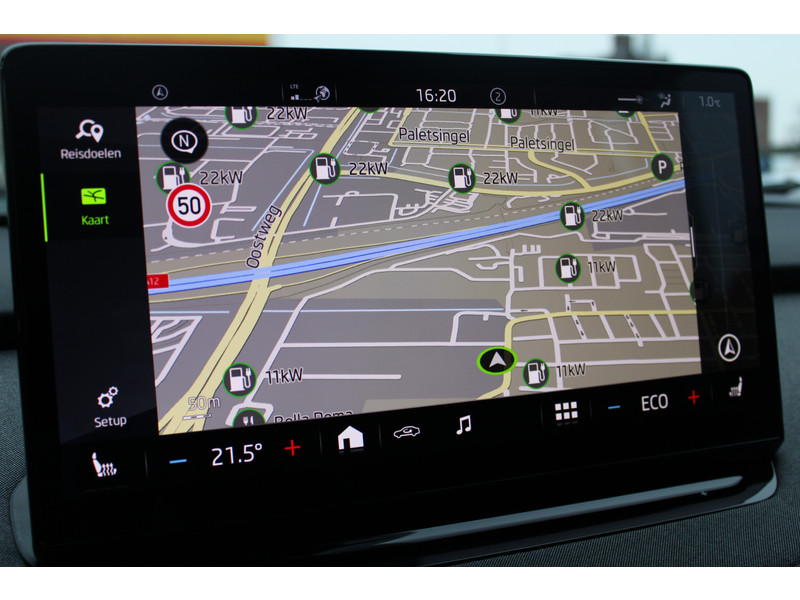 Pas de interface van jouw cockpit moeiteloos aan. Het is mogelijk door het digitale dashboard in deze auto. Omdat je nou eenmaal geen ogen in je achterhoofd hebt, is het altijd lastig om achteruit te rijden zonder brokken te maken. De achteruitrijcamera lost dat probleem op. Als je de adaptive cruise control inschakelt, regelt de auto zelf de snelheid en de afstand tot de auto voor je. Spraakbediening verhoogt de veiligheid en het gebruiksgemak. De auto luistert naar jouw instructies en volgt ze op. In één oogopslag weet je de complete systeemstatus van deze auto. Dankzij Connected Services. De ŠKODA is standaard voorzien van: full map navigatiesysteem, electronic climate control, schakelpaddles aan het stuur, draadloos opladen, DAB ontvangst en regensensor.