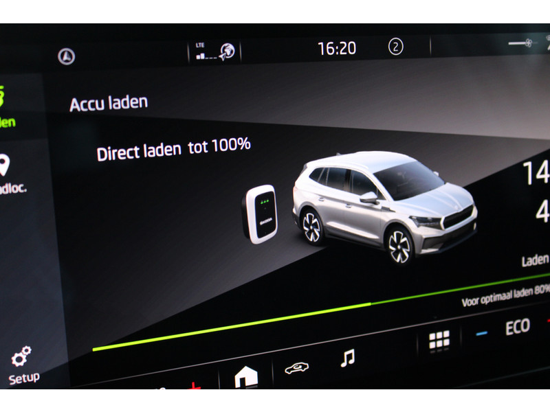 De ŠKODA Enyaq is ook voorzien van ADAS. Deze Advanced Driver Assistence Systems fungeren als extra ogen en oren: ze houden voor jou de weg in de gaten en grijpen in wanneer dat nodig is. De actuele snelheidslimiet, een inhaalverbod en andere verkeersborden. De verkeersborddetectie ondersteunt jou tijdens elke rit. Het Lane-keeping systeem let constant op en waarschuwt of corrigeert als je onoplettend over de lijnen van de rijstrook gaat. Veilig inhalen en invoegen wordt bevorderd door de actieve dodehoekdetectie. De veiligheid van deze auto wordt verder verhoogd door forward collision warning system, vermoeidheidsherkenning, autonoom remsysteem en bandenspanningcontrolesysteem.