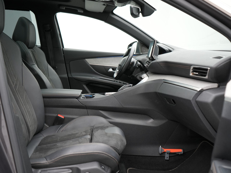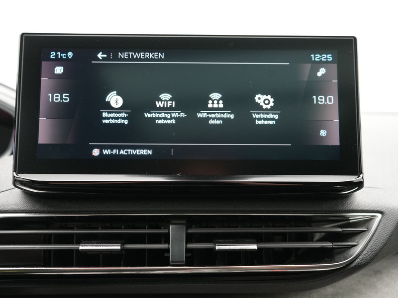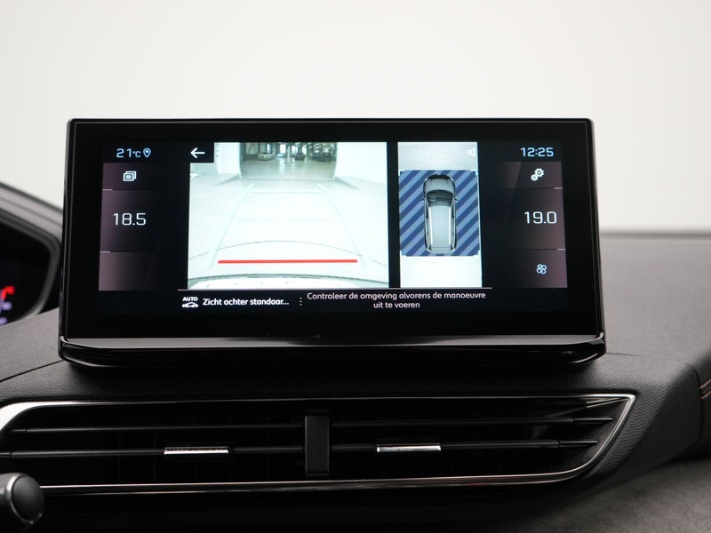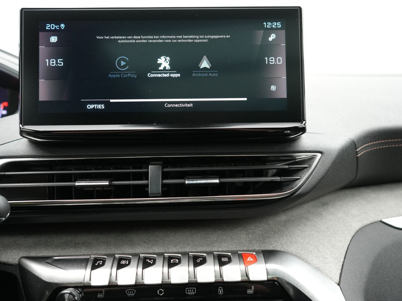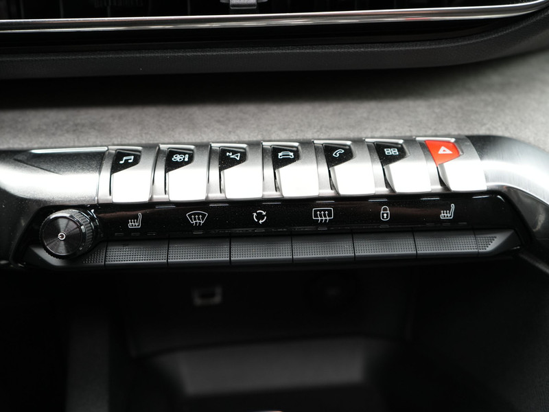 Zoals je mag verwachten van deze Peugeot 5008 is hij uitgerust met een reeks aan actieve veiligheidssystemen. Dat de auto steeds meer taken van de bestuurder overneemt, merk je bijvoorbeeld aan het systeem voor verkeersbord-detectie in deze Peugeot. Het Lane-keeping systeem registreert permanent of je binnen de lijnen van de rijstrook blijft; dwaal je onbedoeld af, dan waarschuwt het systeem en corrigeert de koers. Het systeem van forward collision warning, of in gewoon Nederlands 'botswaarschuwing', treedt in werking als de sensor te weinig afstand signaleert met een voor- of tegenligger. Bovenop deze veiligheidsfeatures heeft deze Peugeot bovendien dodehoekdetectie, hill hold functie, brake assist, vermoeidheidsherkenning en bandenspanningcontrolesysteem.
