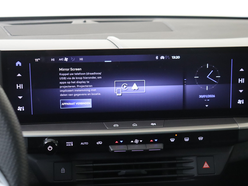 De slimme lay-out van het digitale dashboard zorgt voor een uitstekend overzicht onderweg. De vier camera's die samen de 360 graden camera vormen, bieden je de mogelijkheid om obstakels in elke richting te zien. Adaptive cruise control houdt de ingestelde snelheid vast en houdt automatisch afstand tot jouw voorligger. Met Connected Services wordt iedere rit nóg veiliger. Qua muziekbeleving onderweg gaat deze auto ook een stevige stap verder dankzij het high performance audiosysteem. En deze auto heeft ook dashboard met spraakbediening, full map navigatiesysteem, electronic climate control, schakelpaddles aan het stuur, draadloos opladen en DAB ontvangst als standaard uitrusting.
