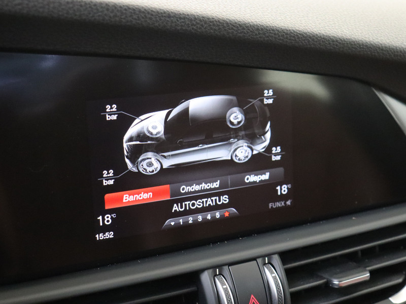 Of het buiten nu warm is of koud, dankzij automatische airconditioning is het binnen altijd behaaglijk. Met de DAB-ontvanger heb jij keuze uit talloze digitale radiozenders met de allerhoogste geluidskwaliteit. Het hoort bij een intelligente auto als deze dat hij zelf in staat is om zijn omgeving in de gaten te houden. Dat doet deze Alfa Romeo met een automatisch inschakelbare verlichting en een regensensor. Natuurlijk is deze Alfa Romeo Giulia voorzien van cruise control. Met centrale deurvergrendeling met afstandsbediening en verstelbaar stuur is deze auto helemaal compleet.