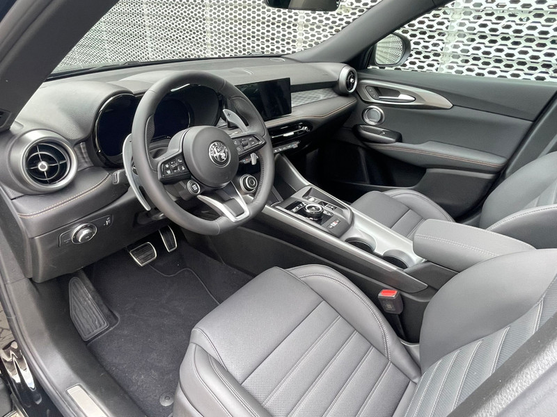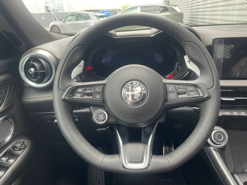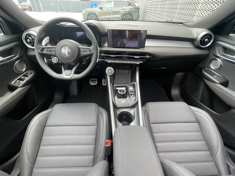 Hij verloochent zijn Italiaanse roots niet, deze Alfa Romeo Tonale is een genot om te rijden en bovendien een elegante verschijning. Het is een auto uit 2025, hij heeft 2500 kilometer op de teller staan. Deze goed onderhouden auto is van de eerste eigenaar. In deze auto vind je een benzinemotor en een automatische transmissie. De leren bekleding straalt klasse en goede smaak uit. Deze Alfa Romeo Tonale heeft verwarmbare voorstoelen, voor zowel bestuurder als bijrijder. De elektrisch bedienbare achterklep opent met een druk op de knop. De slimme koplampen gebruiken de allernieuwste matrix LED-verlichting. Altijd maximaal zicht, nooit verblinding bij de tegenligger. Ook 19 inch lichtmetalen velgen, adaptief dempingsysteem, in delen neerklapbare achterbank, LED-achterlichten en verstelbare lendensteunen horen tot de voorzieningen op deze auto.