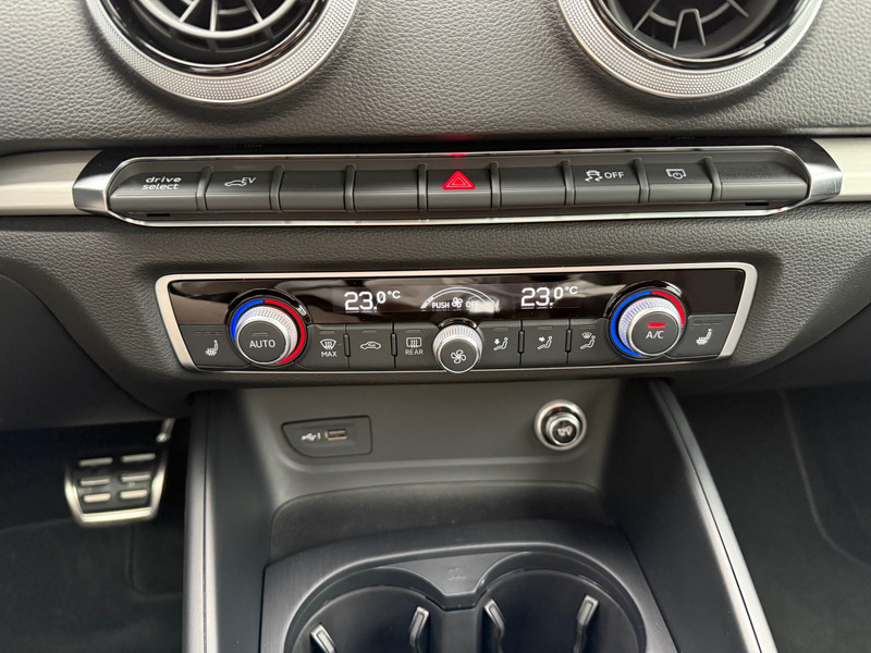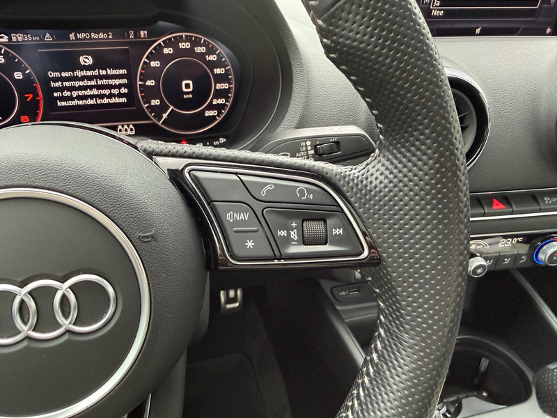 Rij- en route-info wordt perfect in beeld gebracht door het digitale dashboard. Adaptive cruise control is veilig en comfortabel. De snelheidsregelaar houdt automatisch afstand tot het voertuig dat voor je rijdt. Gemakkelijk en veilig is de spraakbediening voor het audio-installatiesysteem en het navigatiesysteem met harde schijf. Daarbij kun jij deze ook bedienen met de knoppen op het stuur. De audio-kwaliteit is geweldig, dankzij de DAB-ontvangst. Aan boord van deze Audi A3 Sportback is een achteropkomend verkeer waarschuwing voor extra veiligheid. Met de automatische airconditioning selecteer jij de gewenste temperatuur. Het systeem doet de rest. En dan is deze auto ook nog eens voorzien van WIFI-hotspot, parkeersensoren achter, regensensor, sportstuurwiel, keyless entry en automatisch dimmende binnenspiegel.