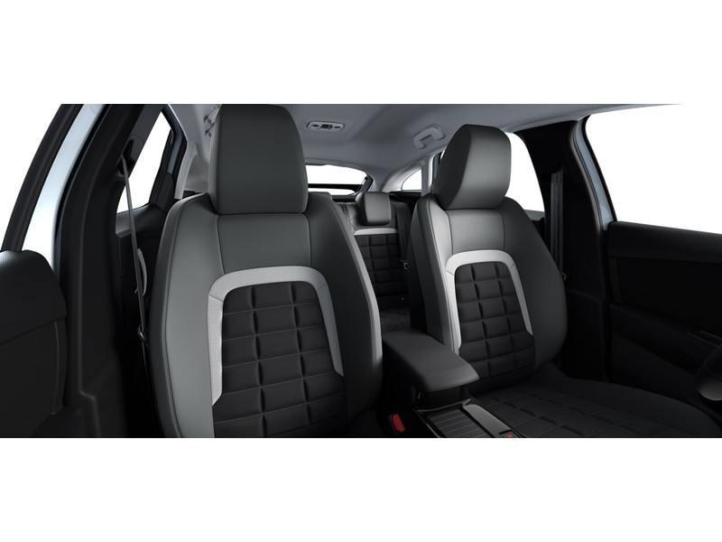 InterieurAutomatische airconditioning met actief carbonfilter2 Isofix bevestigingspunten op achterbank5 in hoogte verstelbare hoofdsteunenAdvanced Comfort Seats met 15mm extra schuimvulling en een gecapitonneerd oppervlakBekleding 'Hello Black' stof en lichtgrijze stof met ledereffect (zwart / lichtgrijs met een smalle lichtgrijze baan)Centraal opbergvak inclusief schuifsluiting in middenconsole en 2 bekerhoudersDashboardstrip zwart met chevronpatroonIn delen neerklapbare achterbank (1/3 - 2/3)In hoogte verstelbare bestuurdersstoelIn hoogte verstelbare passagiersstoelInstrumentenpaneel en luchtroosters voorzien van ‘Siderite Grey’ accentenInterieur met ‘Gris Horizon’ accentenLED plafonnière vóór en achterLendensteunverstelling bestuurdersstoelMet leer beklede versnellingspookknopMiddenarmsteun vóórOpbergtassen achterop voorstoelenOpbergvak (afsluitbaar) in centrale consoleOpbergvak in vóór en achterportierenOpbergvak onder middenarmsteunPortierpanelen bekleed met leer ‘Isabella Black’Stoelen vóór met hoge dichtheid schuimvullingStoelverwarming voorstoelenStuurwielbedieningStuurwiel in hoogte en diepte verstelbaarVolnerf lederen stuurwiel met 'Chrome Satin' accentenZonneklep bestuurder en passagier met spiegel