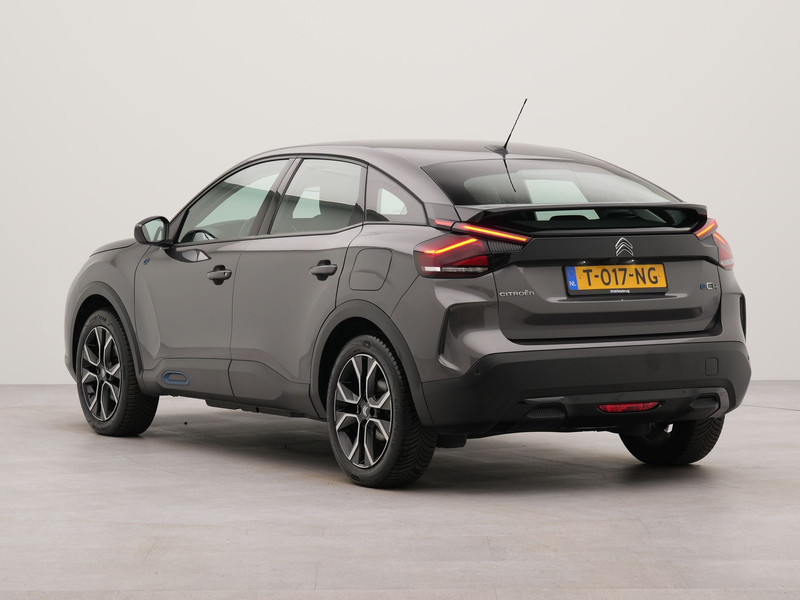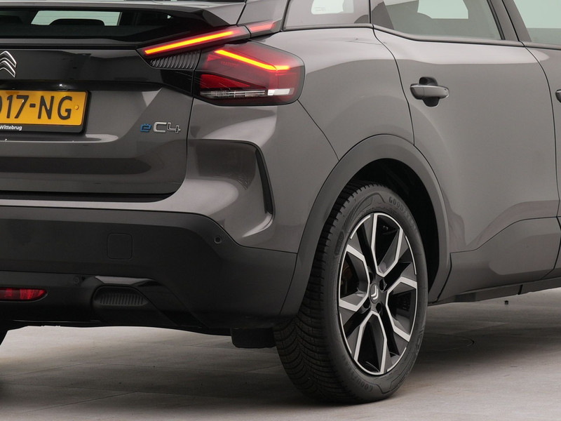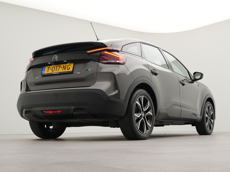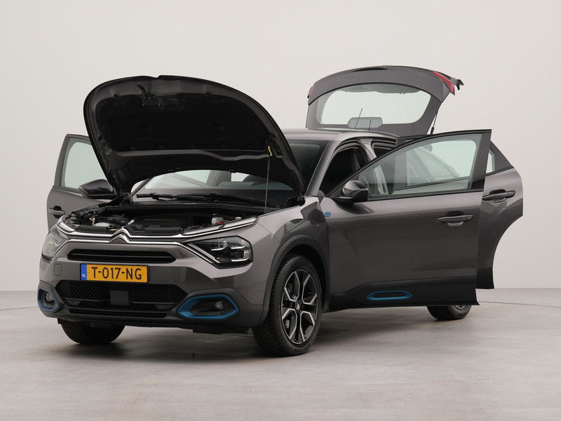 Stijlvol design en topprestaties zonder emissies. Deze Citroën Ë-C4 verbindt elegante lijnen met krachtige elektrische aandrijving zonder schadelijke uitstoot. Schoon, stil en fiscaal vriendelijk: met de elektromotor is het zuinig zoeven! De auto is voorzien van leren bekleding - een fraaie en sfeerverhogende extra. Onderweg zorgen de comfortstoelen voor een ontspannen rit. Tot de uitrusting van deze Citroën behoren ook 18 inch lichtmetalen velgen, Full LED koplampen, adaptief dempingsysteem, geluidsisolerende ramen, in delen neerklapbare achterbank en verstelbare lendensteunen.