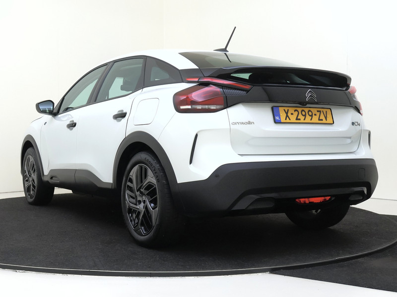 Milieuvriendelijke techniek gaat bij de Citroën Ë-C4 hand in hand met soepele prestaties en uitgesproken design. Het aantal kilometers dat je op een acculading kunt rijden, is ruimschoots genoeg voor de gangbare dagelijkse ritten, en het opladen kan in de meeste gevallen 's nachts gebeuren. Tot de voorzieningen van deze auto behoren 18 inch lichtmetalen velgen, Full LED koplampen, adaptief dempingsysteem, geluidsisolerende ramen, in hoogte verstelbare passagiersstoel en in delen neerklapbare achterbank.