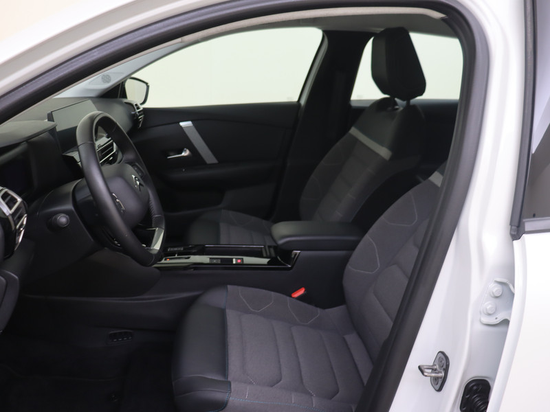 Zoals je mag verwachten van deze Citroën Ë-C4 is hij uitgerust met een reeks aan actieve veiligheidssystemen. Bij de veiligheidssystemen van deze Citroën hoort ook de verkeersbord-detectie. Die leest tijdens het rijden als het ware met je mee en attendeert je op de significante verkeersborden langs en boven de weg. Het Lane-keeping systeem let constant op en waarschuwt of corrigeert als je onoplettend over de lijnen van de rijstrook gaat. Forward collision warning waarschuwt voor een kop-staart botsing. Dankzij veiligheidsvoorzieningen als hill hold functie, brake assist, vermoeidheidsherkenning en bandenspanningcontrolesysteem, ben je steeds veilig onderweg.