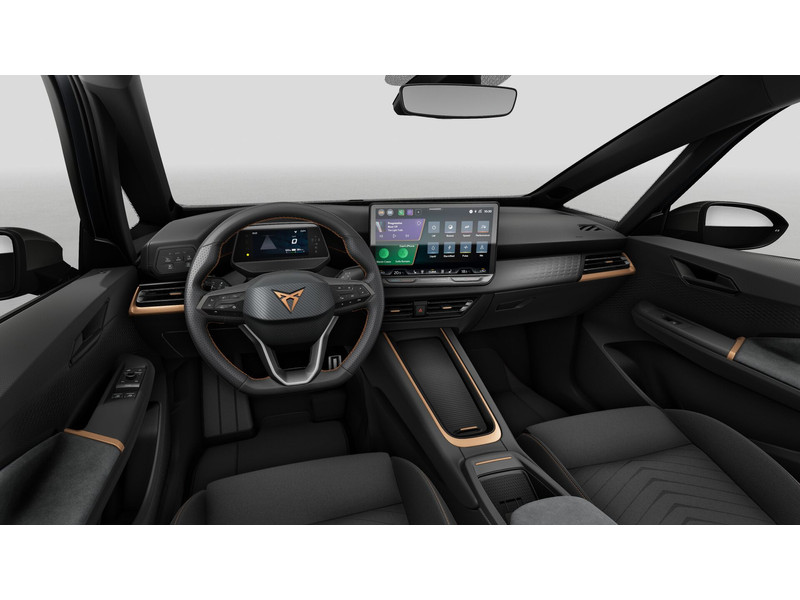 UitrustingDigitaal instrumentenpaneel (Virtual Cockpit)Parkeersensoren achter & voorRijprofielkeuzeVerwarmbare voorstoelenAC laden tot 11 kW (standaard laadpaal)Afstandscontrolesysteem (Front Assist) met noodremfunctieAirconditioning automatisch met 2-zone-temperatuurregelingApple CarPlay™, Android Auto™BandenspanningscontrolesysteemBluetooth telefoonkoppeling en draadloze lader voor telefoonBuitenspiegels elektrisch verstel-, verwarm- & inklapbaarCentrale airbag, gordijn airbag en zij-airbags voorCentrale vergrendeling met afstandsbediening en Keyless Entry&GoCUPRA CONNECT (aanbod afhankelijk van uitvoering)Digitale radio ontvangst (DAB+)E-Call noodoproepsysteem voor het oproepen van hulpdienstenEHBO-kitElektrische interieurvoorverwarming 6kWElektronisch startblokkeringGeschikt voor DC snelladen tot 120 kWGevarendriehoekGordel reminder, vóór en achterHoofd airbags voor, uitschakelbaar voor bijrijderKinderzitbevestiging vóór en 2e zitrij (ISOFIX)Laadkabel MODE 3, voor laden via laadpaal of WallboxLane Assist (Rijstrookbehoudassistent)LED slimme sfeerverlichting in voorportieren en dashboardLifehammers, 2 stuksMake-up spiegels in zonneklep, verlichtMultimediasysteem met 12,9 inch (32,77 cm) touchscreenRuitenwissers met intervalstand en licht- & regensensorSchijfremmen vóórSnelheidsafhankelijke stuurbekrachtigingSnelheidsbegrenzer zonder cruise controlSpeakers 7SpraakbedieningTot en met 5 jaar onderhoudsinspecties en APK-keuringUitwijk- en afslagassistentUSB-aansluiting (2x) vóór & (2x) achter, type USB-CVeiligheidshesjeVerkeersbordenherkenningVermoeidheidsherkenning (Attention & drowsiness Assist)
