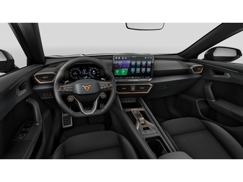 InterieurAutomatisch dimmende binnenspiegelBekleding stof Black SoulBestuurdersstoel en bijrijdersstoel in hoogte verstelbaarDakhemel uitgevoerd in zwartFrames om luchtuitstroomroosters in Copper en Dark AluminiumLendesteunverstelling voorstoelen handmatigMattenset CUPRA, uitgevoerd in zwartMultifunctioneel verwarmbaar stuurwiel met start–en CUPRA–knop en schakelpaddelsSportpedalen, uitgevoerd in aluminiumSupersport stuurwiel in CUPRA design