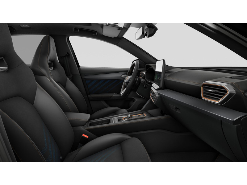 InterieurAutomatisch dimmende binnenspiegelBekleding stof Black SoulBestuurdersstoel en bijrijdersstoel in hoogte verstelbaarDakhemel uitgevoerd in zwartDinamica (suede-look)Frames om luchtuitstroomroosters in Copper en Dark AluminiumLendesteunverstelling voorstoelen handmatigMattenset CUPRA, uitgevoerd in zwartMultifunctioneel verwarmbaar stuurwiel met start–en CUPRA–knop en schakelpaddelsSportpedalen, uitgevoerd in aluminiumSupersport stuurwiel in CUPRA design