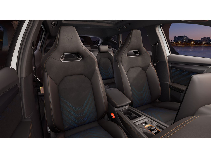 InterieurAutomatisch dimmende binnenspiegelBekleding stof Black SoulBestuurdersstoel en bijrijdersstoel in hoogte verstelbaarDakhemel uitgevoerd in zwartDinamica (suede-look)Frames om luchtuitstroomroosters in Copper en Dark AluminiumLendesteunverstelling voorstoelen handmatigMattenset CUPRA, uitgevoerd in zwartMultifunctioneel verwarmbaar stuurwiel met start–en CUPRA–knop en schakelpaddelsSportpedalen, uitgevoerd in aluminiumSupersport stuurwiel in CUPRA design