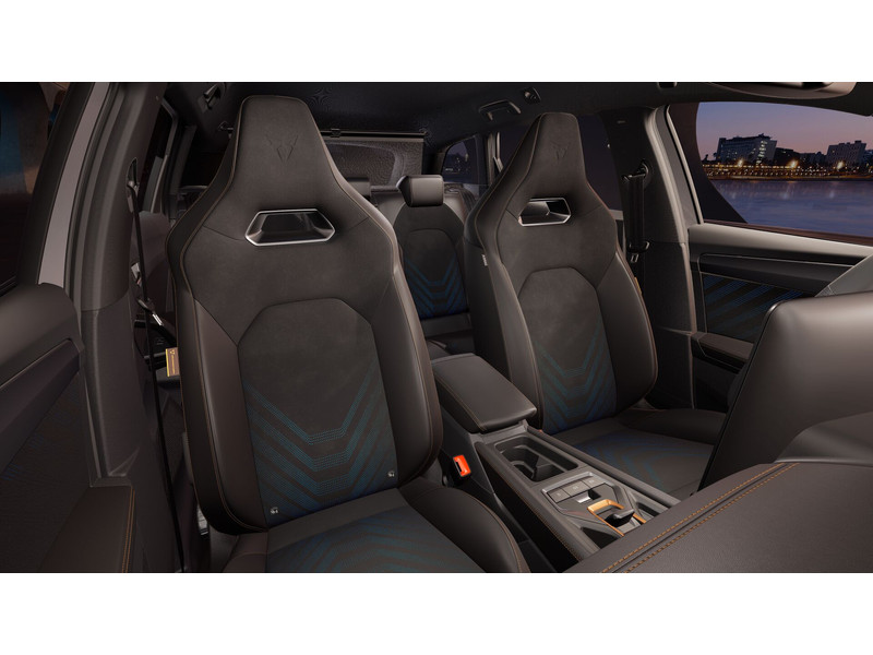 InterieurAutomatisch dimmende binnenspiegelBekleding Dinamica en CUPRA logo in hoofdsteunBestuurdersstoel en bijrijdersstoel in hoogte verstelbaarDakhemel uitgevoerd in zwartFrames om luchtuitstroomroosters in Copper en Dark AluminiumKuipstoelen vóór met geïntegreerde hoofdsteunLendesteunverstelling bestuurdersstoel elektrischMattenset CUPRA, uitgevoerd in zwartMultifunctioneel verwarmbaar stuurwiel met start–en CUPRA–knop en schakelpaddelsSportpedalen, uitgevoerd in aluminiumSupersport stuurwiel in CUPRA design