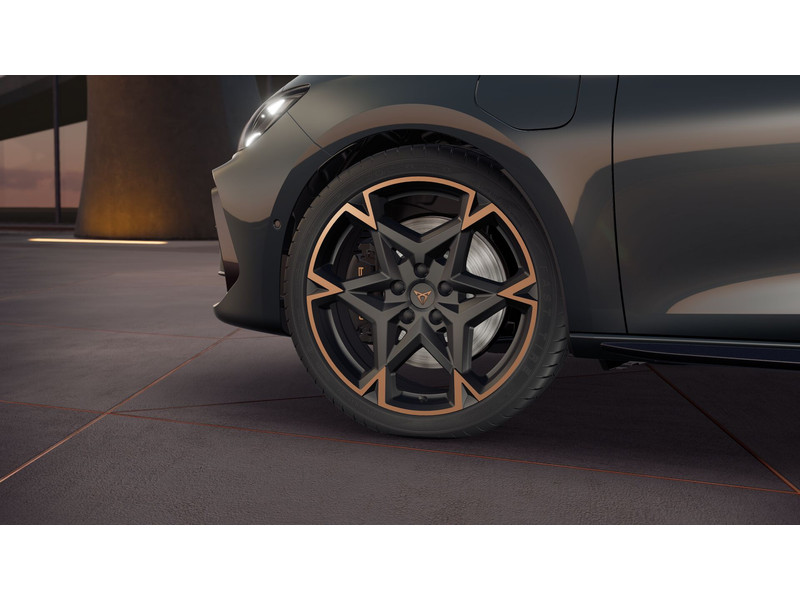 Banden 235/35 R19Buitenspiegels in Dark AluminiumBumpers in carrosseriekleur, uitlaat sierstukken in CopperCUPRA achterspoilerDonker getinte ruiten achter (vanaf B-stijl)Instaplijst (verlicht) aluminiumKoplampverlichting Full LED in signature vormKoplampverlichting Matrix LED in signature vormLED-achterlichten, met dynamische richtingaanwijzersLED-dagrijverlichting en Coming & Leaving Home verlichtingMistlampen vóór LED met bochtenverlichtingRemklauwen uitgevoerd in zwartSide Blades uitgevoerd in Dark AluminiumVelgen 'Polar Copper', 19 inch lichtmetaalWegklapbare trekhaakWelkomsverlichting “CUPRA” in buitenspiegelsZijruitomlijsting uitgevoerd in hoogglans zwart