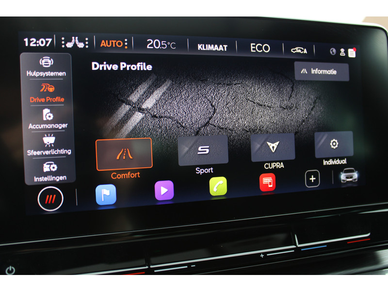 Een gevisualiseerd overzicht van alle belangrijke functies wordt geleverd door het digitale dashboard. Ongelukken of parkeerschade? Dat gebeurt je niet meer, met de achteruitrijcamera. Met adaptive cruise control houdt deze auto automatisch afstand tot jouw voorligger. Kop aan kont langzaam rijden: dan is afstand houden soms lastig. De file assistent helpt en zorgt automatisch voor veilige ruimte tot de voorligger. Ook als die tot stilstand komt. Intelligente spraakbediening herkent jouw commando's en voert opdrachten snel en soepel uit. Deze CUPRA is voorzien van full map navigatiesysteem, WIFI-hotspot, achteropkomend verkeer waarschuwing, electronic climate control, schakelpaddles aan het stuur en draadloos opladen.