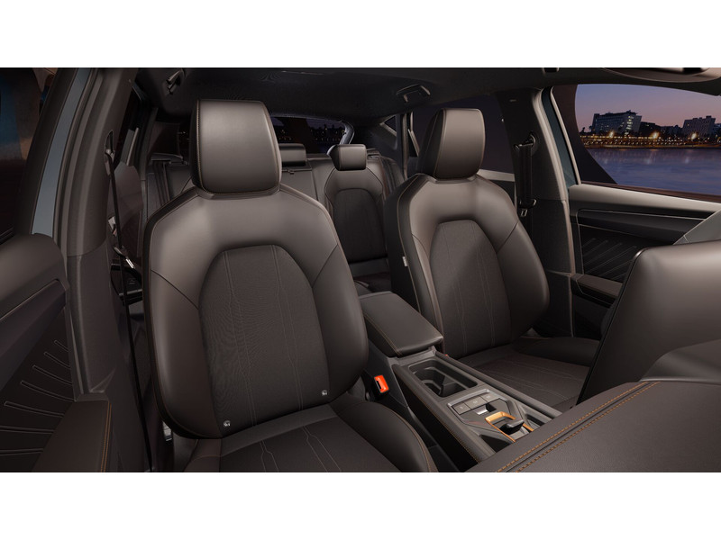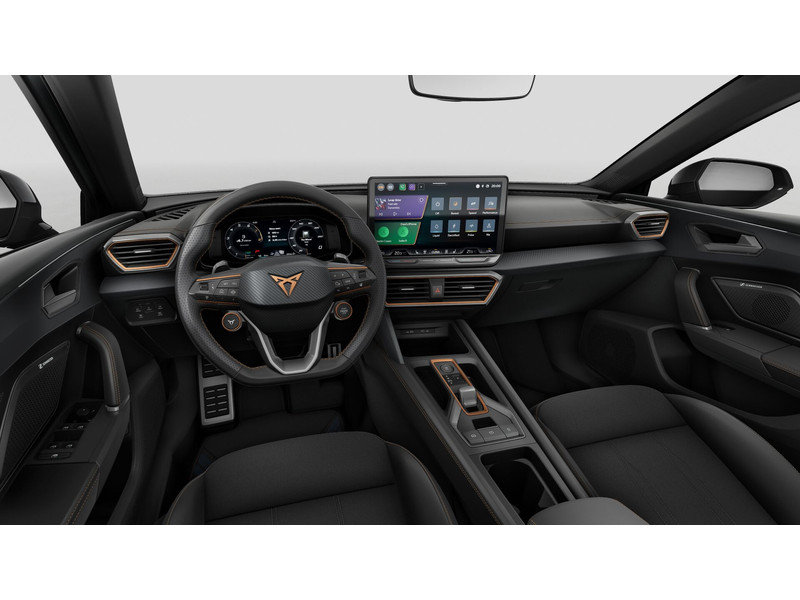 InterieurAutomatisch dimmende binnenspiegelBekleding stof Black SoulBestuurdersstoel en bijrijdersstoel in hoogte verstelbaarDakhemel uitgevoerd in zwartFrames om luchtuitstroomroosters in Copper en Dark AluminiumLendesteunverstelling voorstoelen handmatigMattenset CUPRA, uitgevoerd in zwartMultifunctioneel verwarmbaar stuurwiel met start–en CUPRA–knop en schakelpaddelsSportpedalen, uitgevoerd in aluminiumSportstoelenSupersport stuurwiel in CUPRA design